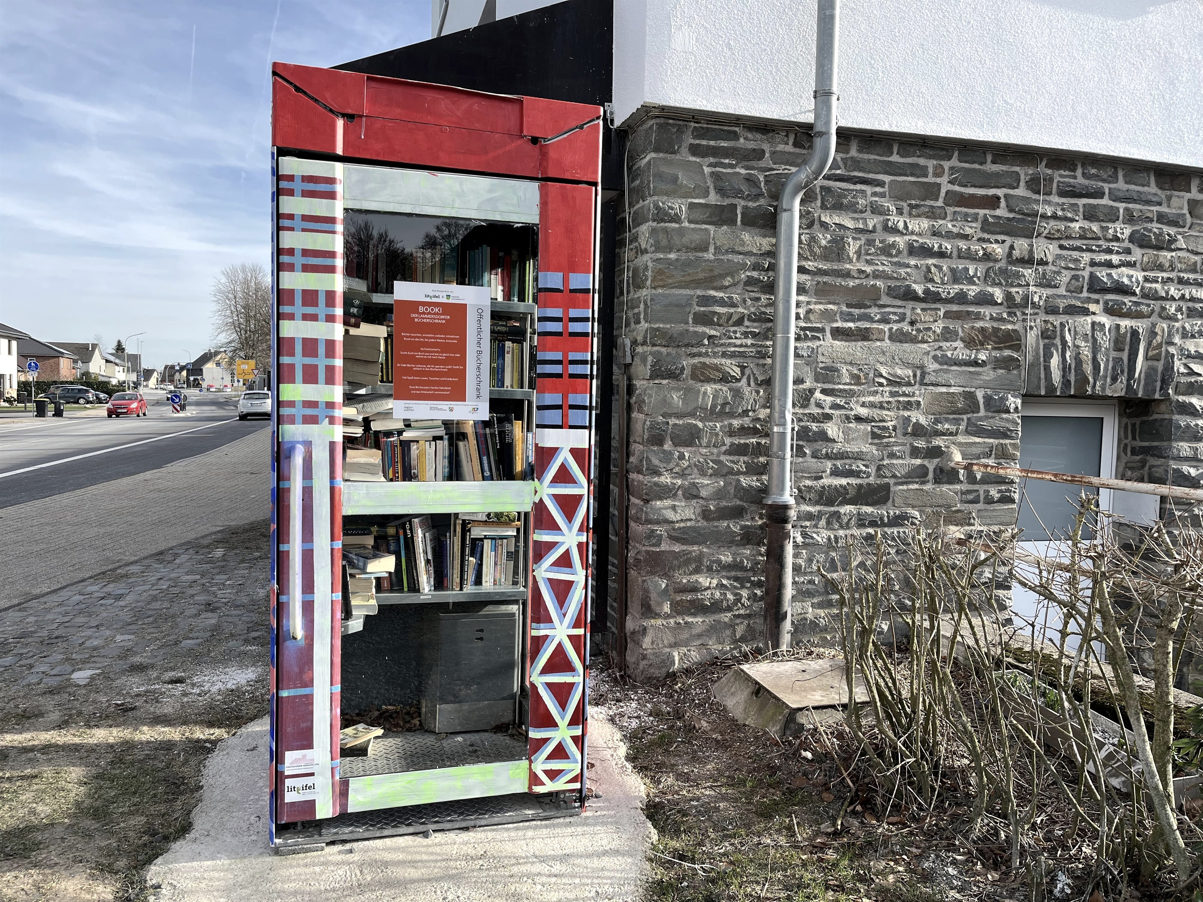 Der Bücherschrank steht neben der Grundschule in Lammersdorf. Dort kann man durch verschiedenste gebrauchte Bücher stöbern und auch gerne das ein oder andere mitnehmen. Wer noch gut erhaltene Bücher hat, kann diese dort abgeben, damit sie neue Besitzer finden.