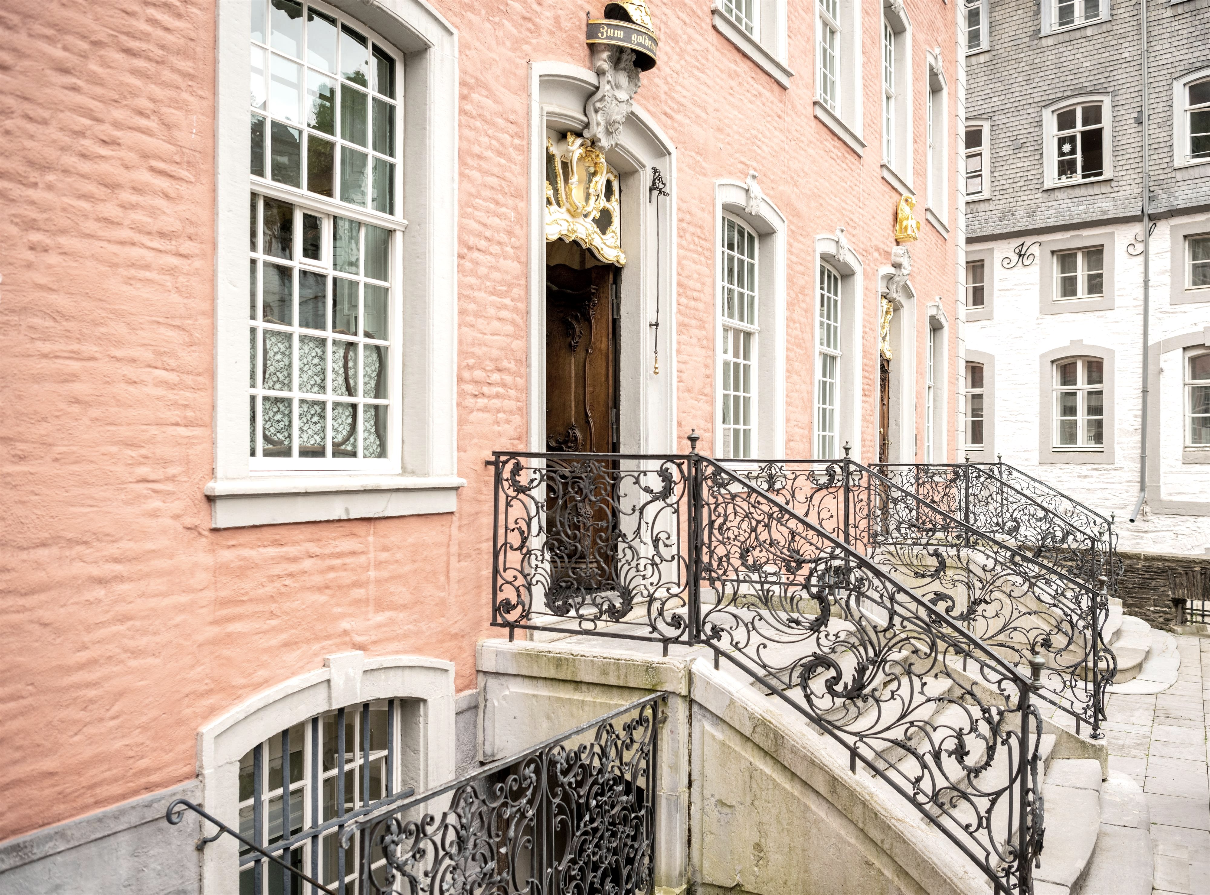 Fast allen Menschen in Monschau und darüber hinaus ist das Rote Haus ein Begriff, ist es doch eines der wichtigsten Wahrzeichen der Stadt und noch dazu ein echtes Schmuckkästchen, reich an Kostbarkeiten aus längst vergangenen Zeiten. Kaum ein anderes Gebäude spiegelt die Geschichte der einstigen Tuchmacherstadt besser wider als das Rote Haus. Ursprünglich wurde es im Jahr 1760 von Textilfabrikant Johann Heinrich Scheibler als Wohn- und Geschäftsgebäude erbaut. Die bis heute erhaltene Einrichtung mit seltenen Stücken aus Rokoko, Louis-seize und Empire präsentiert eindrucksvoll den Glanz der großbürgerlichen Wohnkultur von damals.