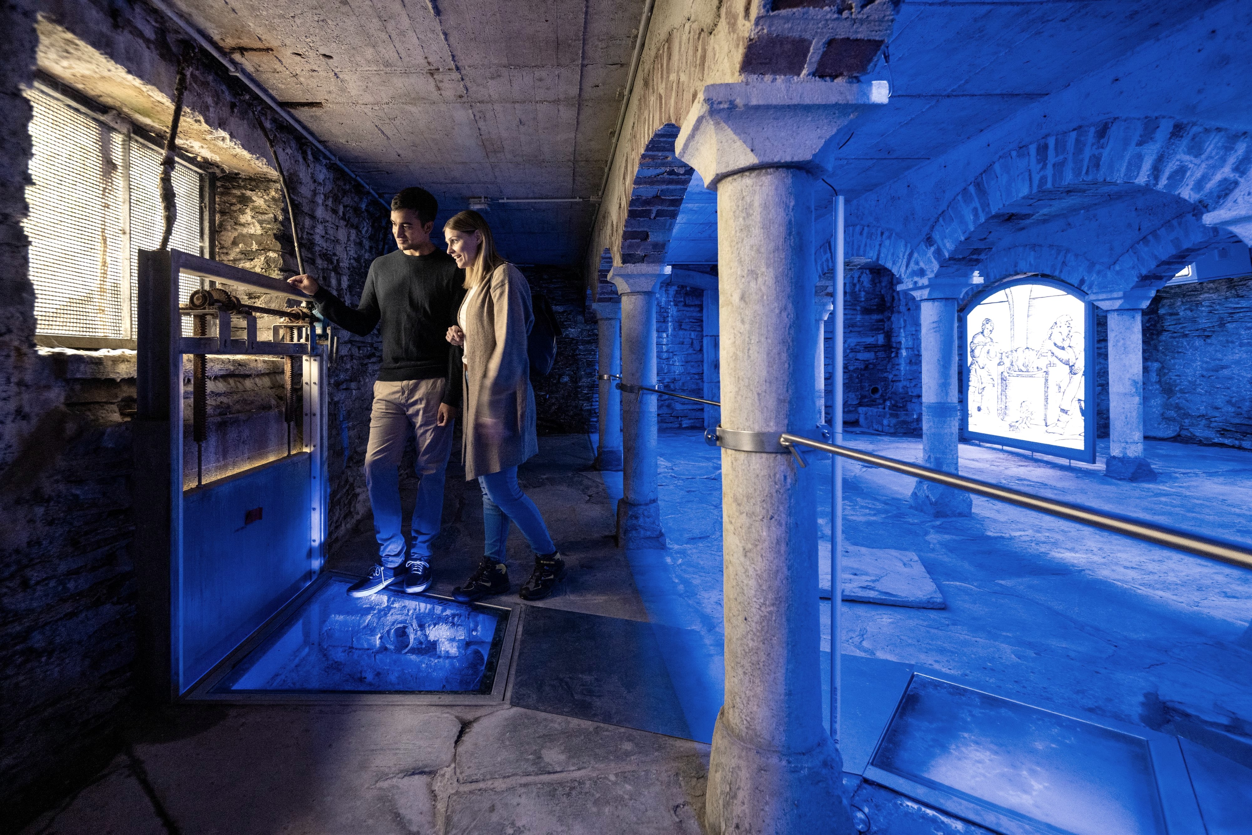 Ergänzt wird der Rundgang durch eine zusätzliche Ausstellung im Hausteil „Zum Pelikan“, von wo aus einst der Handel und die Produktion der begehrten Wolltuche geleitet wurde. In verschiedenen Themenräumen widmen sich moderne Präsentationselemente noch einmal mehr der aufwendigen Herstellung der Tuche sowie den wichtigen Handelsbeziehungen der Familie Scheibler.