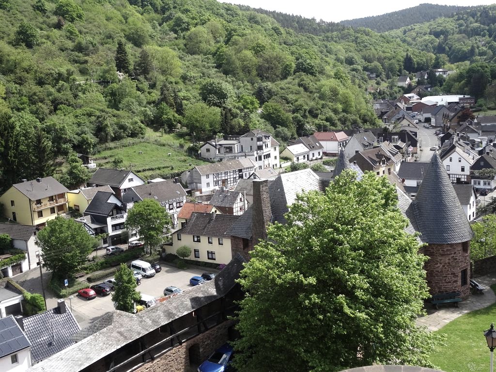 Dieser "Eifel-Blick" auf dem Bergfried (220 Meter über dem Meeresspiegel) der Burg Hengebach bietet Ihnen in süd- bis nordwestlicher Richtung einen Blick über die Ortslage Heimbach, wobei zwei Kernbereiche des Nationalpark Eifel im Blickfeld liegen.