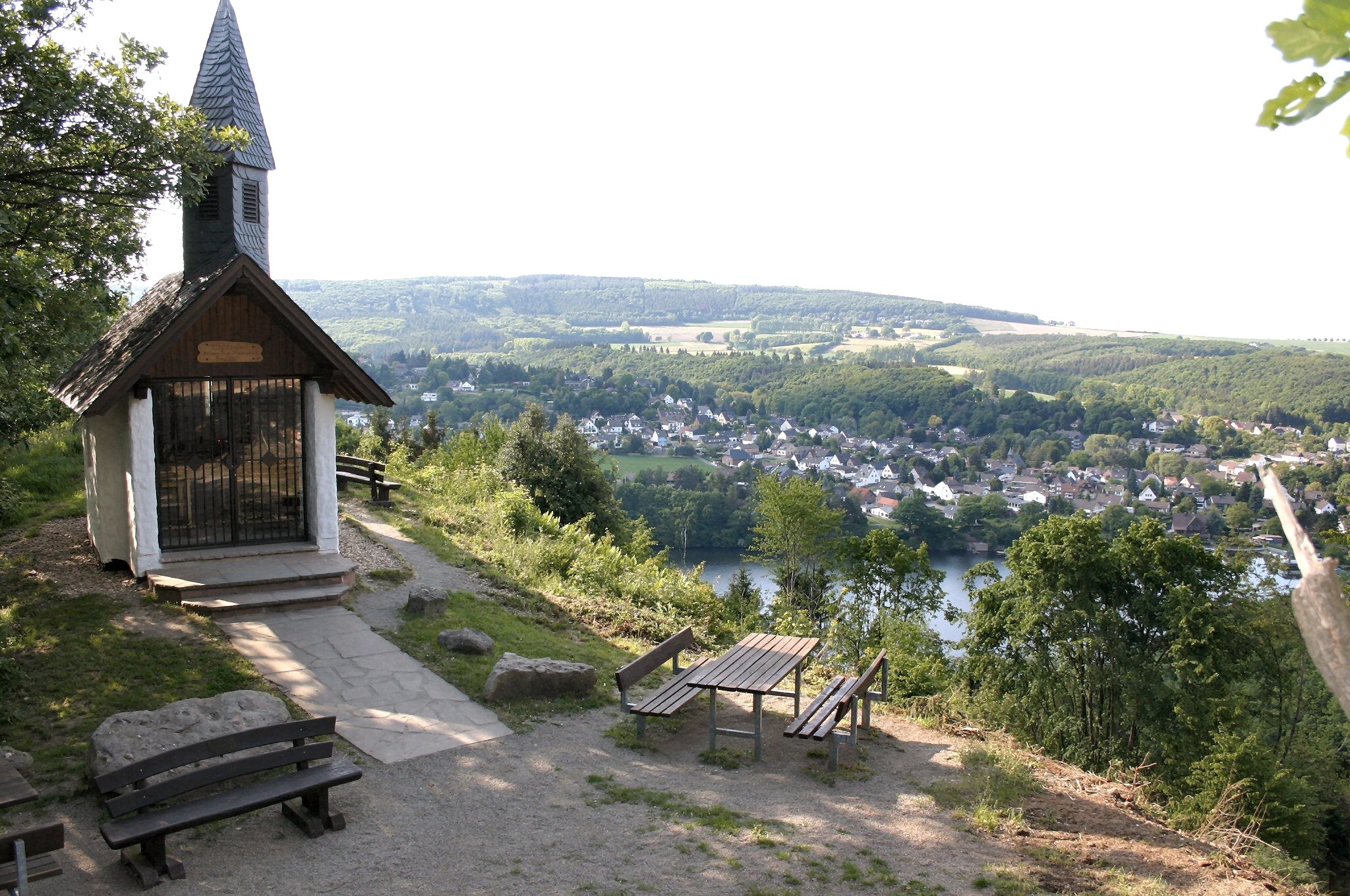 Den Eifel-Blick "Waldkapelle" können Sie auf einer Wanderung auf der Felspassage oder per Mountainbike auf der MTB-Runde C, Seeblick, erleben.