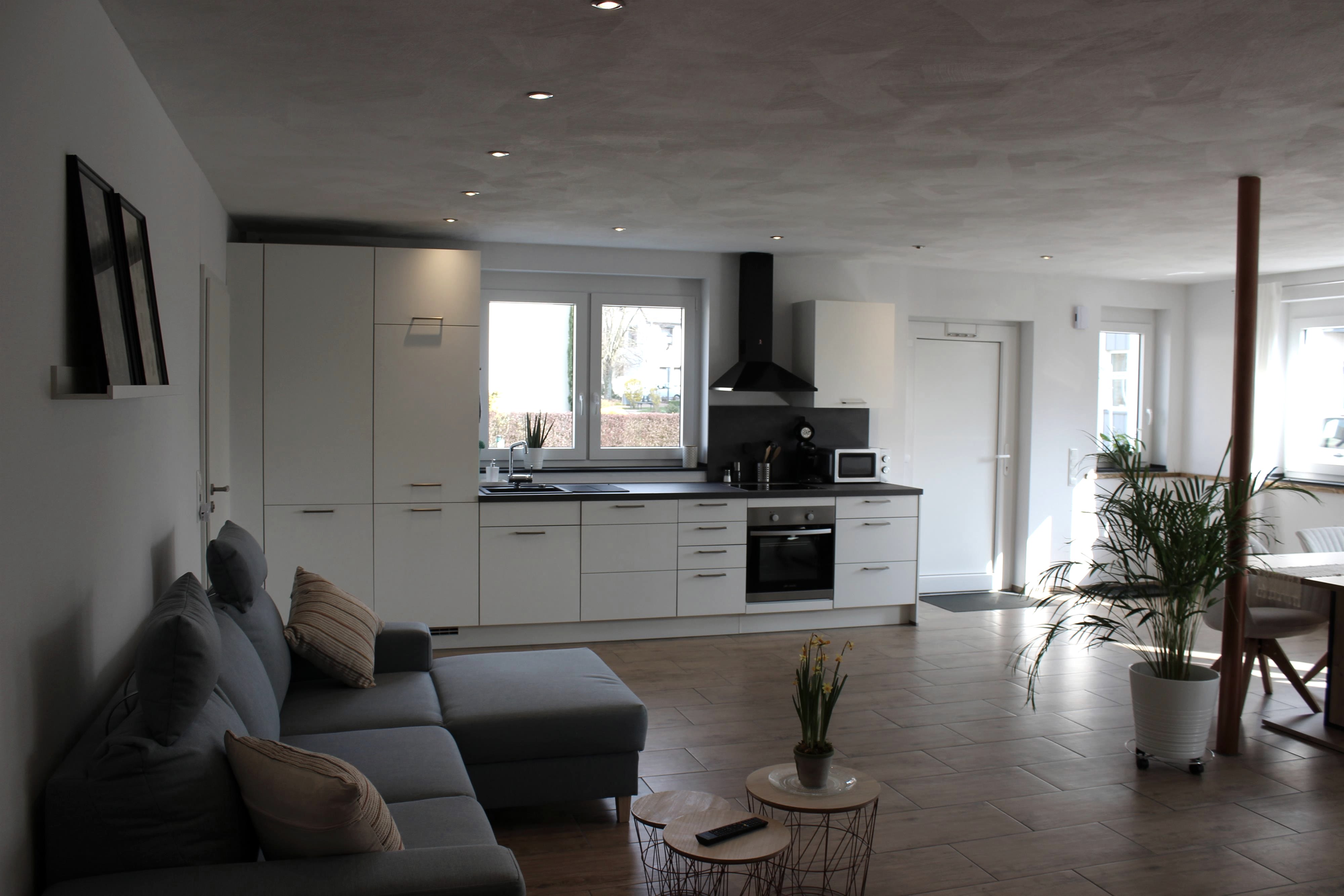 Die im Jahr 2021 neu errichtete Wohnung bietet auf 75 m² einen offenen Koch-/Wohn-/Essbereich, ein Schlafzimmer mit großem Boxspringbett und ein modernes Bad.