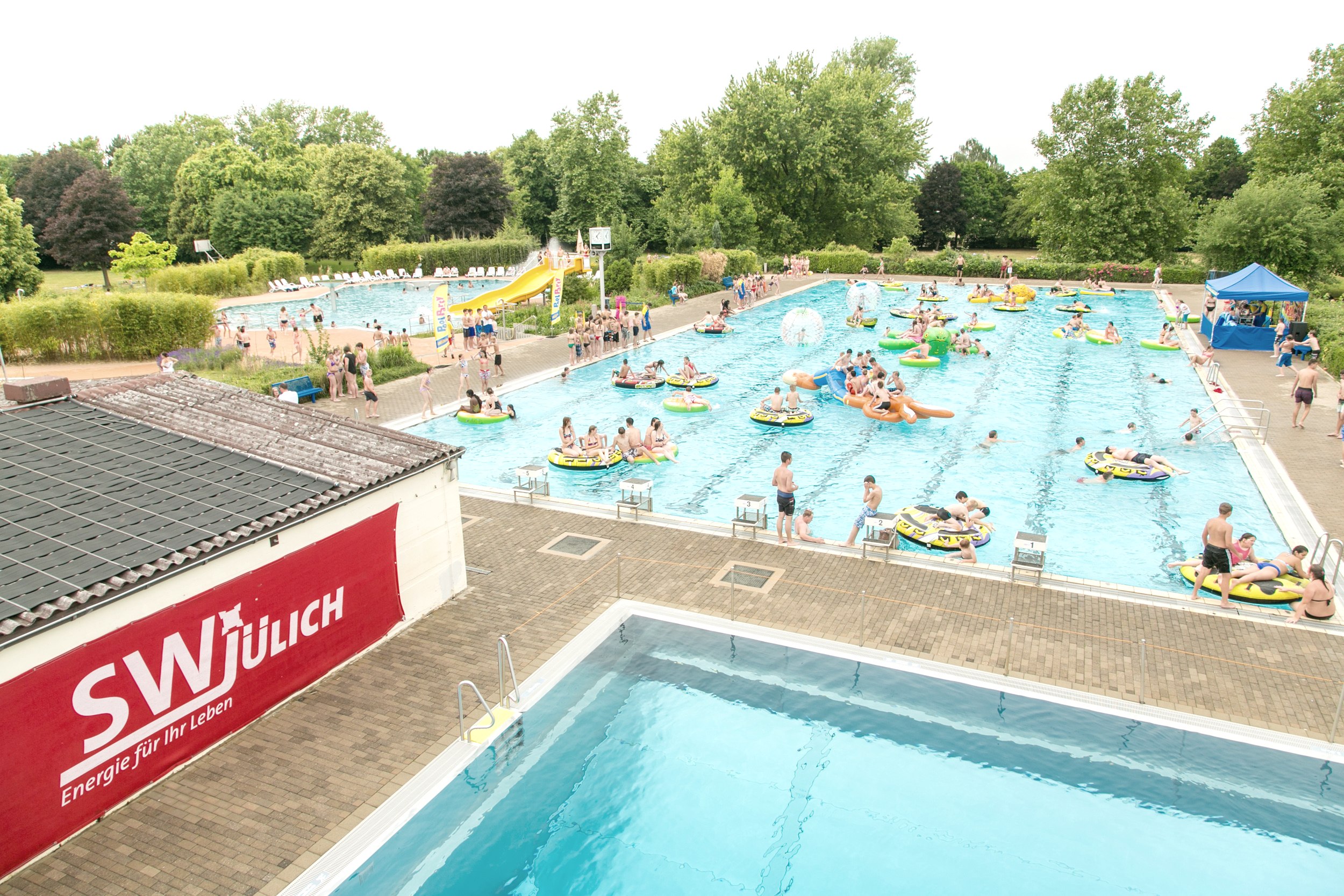 Wasserratten können sich auf jede Menge Badespaß mit Rutsche, Sprungtürmen und Wasserstrudeln freuen - und auf erwärmtes Wasser, denn seit 2014 erwärmt die Stadtwerke Jülich GmbH im Jülicher Freibad das Wasser.