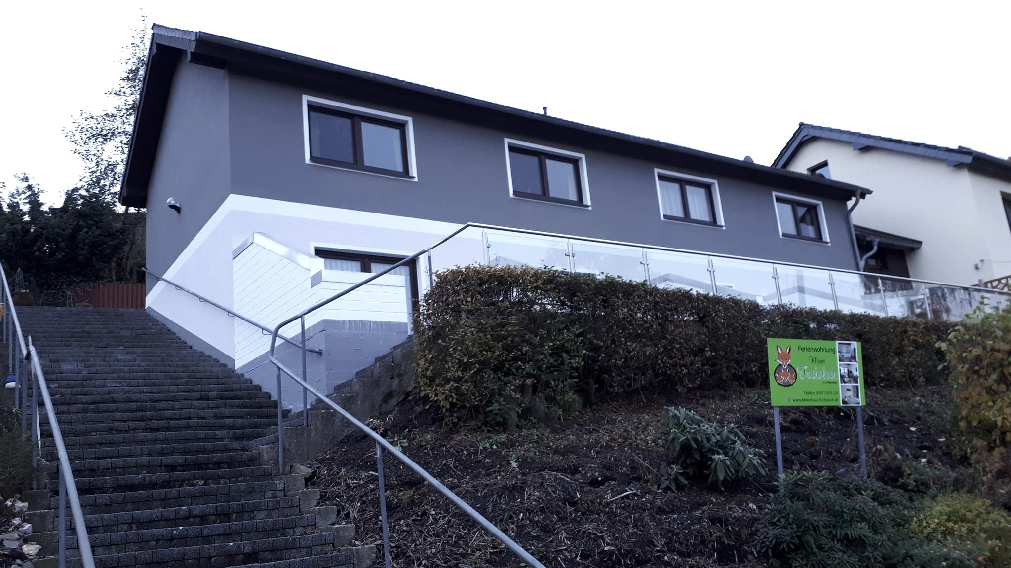 Hunde (max.3 im Ferienhaus Fuchsloch und max. 1 in der Ferienwohnung Kleines Fuchsloch) sind als Gäste NUR AUF ANFRAGE willkommen und werden mit 10,00€/Übernachtung, pro Tier, berechnet. (Wird vor Ort zusätzlich berechnet) Für die Hunde ist dringend ein großes Handtuch, Hundekorb oder Decke mitzubringen. Die Hunde dürfen auch mit der Hundedecke nicht auf Sitzmöbel oder Betten und NIE Alleine in der Wohnung bleiben.