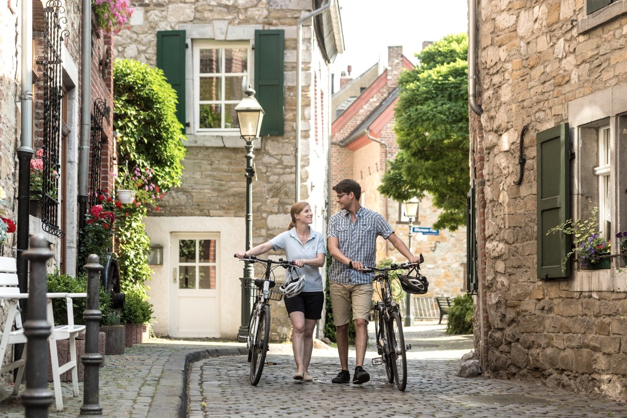 Man folgt dieser Landschaft bis über die Grenze – und gelangt in die niederländische Etappe der Grünroute. Hier ziehen in schnellem Wechsel Siedlungen von Bergarbeitern, alte Schlösser und Museen vorbei – und immer wieder stößt man auf ehemalige Zechen, die heute erholsame Parklandschaften sind. Nahe dem belgischen Genk findet sich eine der ältesten und wichtigsten Steinkohleminen des Landes mit ihren imposanten, restaurierten Fördertürmen. Den Abschluss der Tour in Belgien dominieren dann wieder Flora und Fauna: Natürliche Ruhe spenden der Japanische Garten in Hasselt, eine 1.000-Weiher-Landschaft oder Wanderungen über ehemalige Bergbauhalden auf dem Weg nach Beringen.