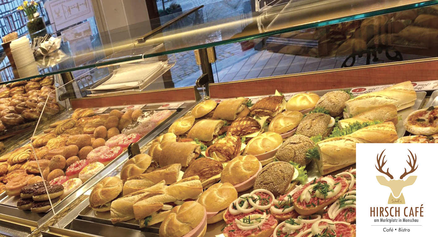 „…kleiner Hunger, Kaffee & Kuchen oder ein leichter Snack mit einem passenden leckeren Getränk. Gemütlich Platz nehmen auf der Sonnenterrasse auf dem Marktplatz oder im Lokal auf 2 Etagen. Beginnen Sie den Tag mit einem leckeren Frühstück, einem belegten Baguette oder einem Sandwich, alles auch zum Mitnehmen!