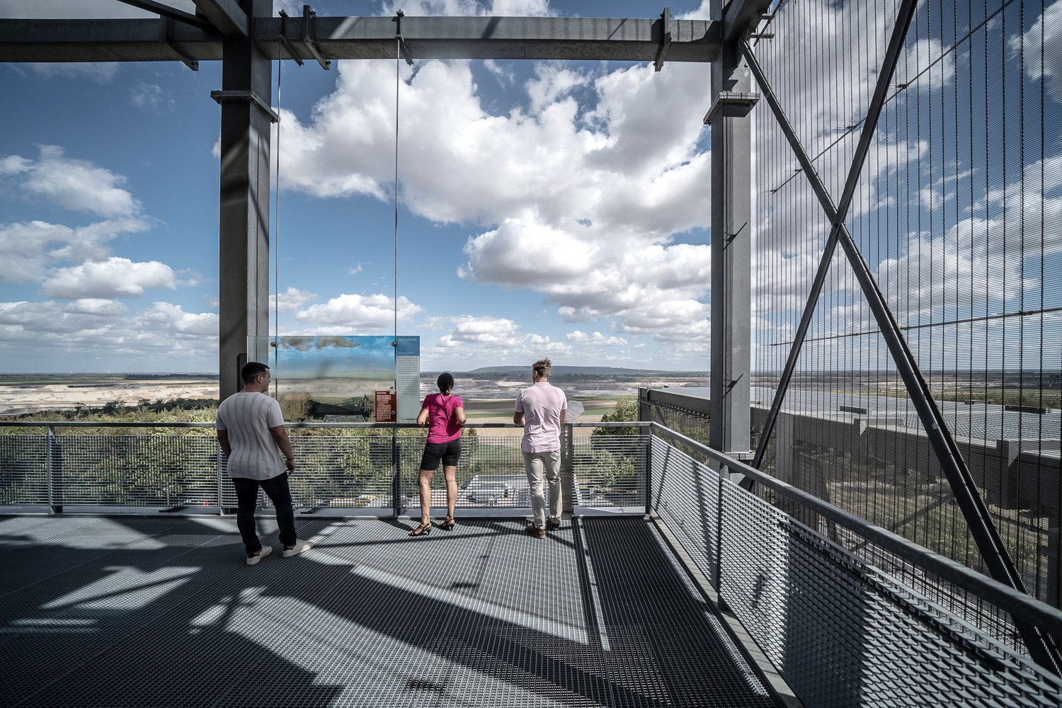 Sie haben die Wahl: Entweder Sie erklimmen den stählernen Riesen auf der Goltsteinkuppe über seine 216 Stufen oder Sie lassen sich mit dem Aufzug ganz bequem bis zur achten von zwölf Ebenen transportieren. Beim Aufstieg erfahren Sie viel Wissenswertes über die Region im Wandel und wie der Tagebau die Landschaft und die Menschen geprägt hat. Von seinen Aussichtsplattformen können Sie diesen Transformationsprozess mit eigenen Augen erleben. Nach Ende der Braunkohleförderung soll aus dem heutigen Tagebauloch ein See entstehen, mit dessen Befüllung schon in wenigen Jahren begonnen wird. Es lohnt sich also nicht nur einmal, sondern immer wieder zu kommen, um die Veränderungen hautnah zu beobachten.