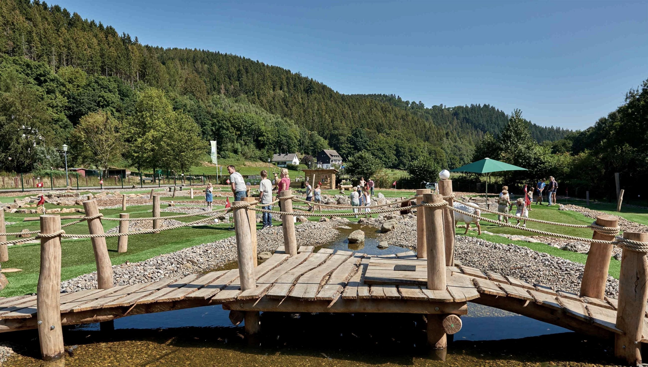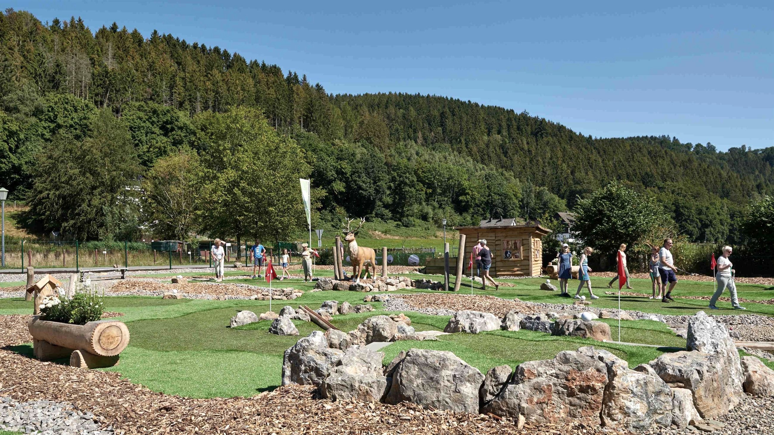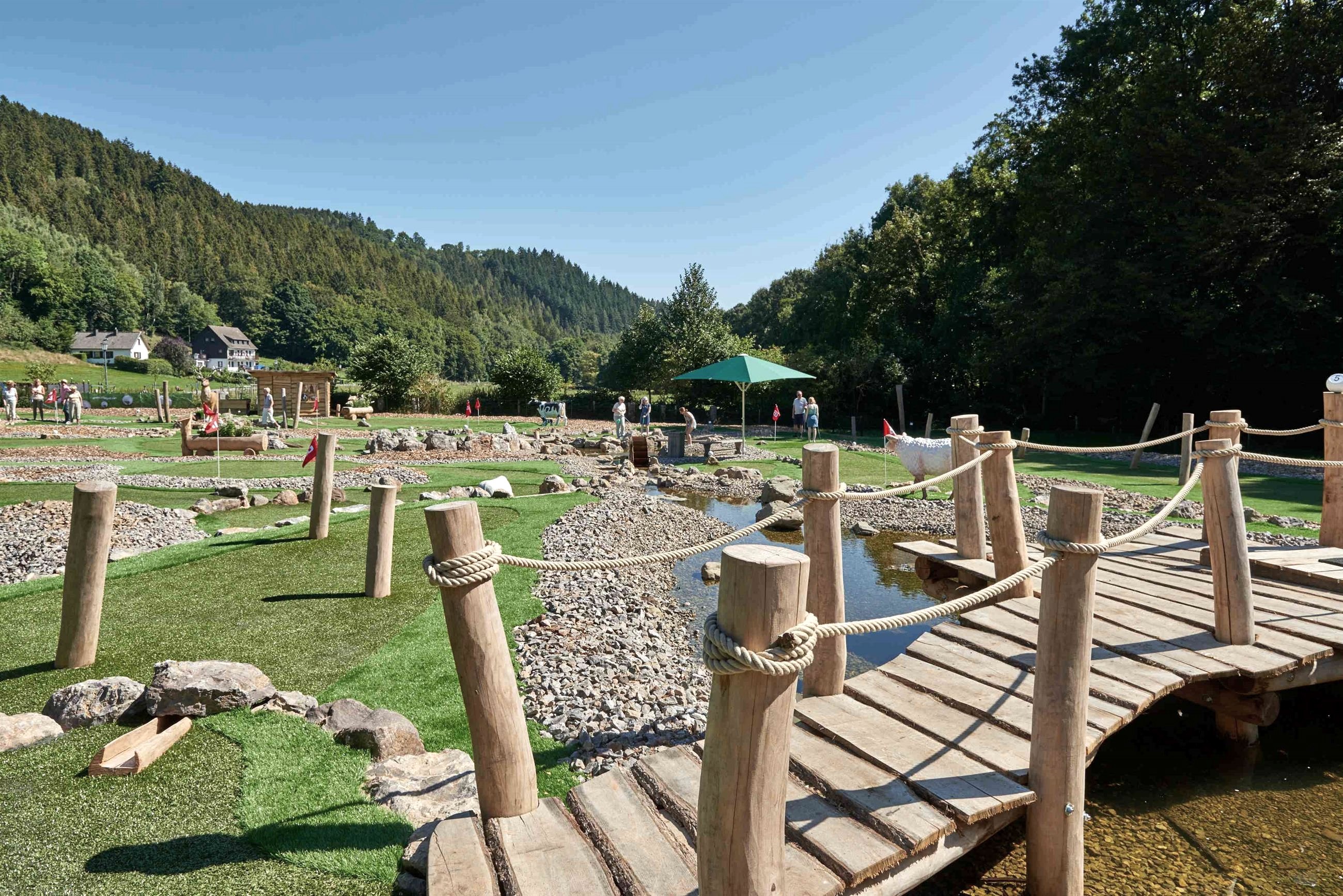 Bei Kallbach´s Adventure Golf spielen Sie auf naturnahen Kunstrasenbahnen und wie beim „großen“ Golf auf 18 Löchern. Hügel, Senken, Geländeübergänge und allerlei spannende Überraschungen müssen auf den Greens bis zu 50 Metern Länge bewältigt werden. So schlagen Sie beispielsweise über Bachläufe hinweg, um Findlinge herum, in Fenster von Holzhütten hinein, über Sandbunker und durch Tunnelsysteme. Auch ein sich drehendes Mühlrad ist zu überwinden. Es ist das neue Freizeiterlebnis von jung bis alt und vereint die Disziplinen Abenteuer und Golf auf über 3000 qm.