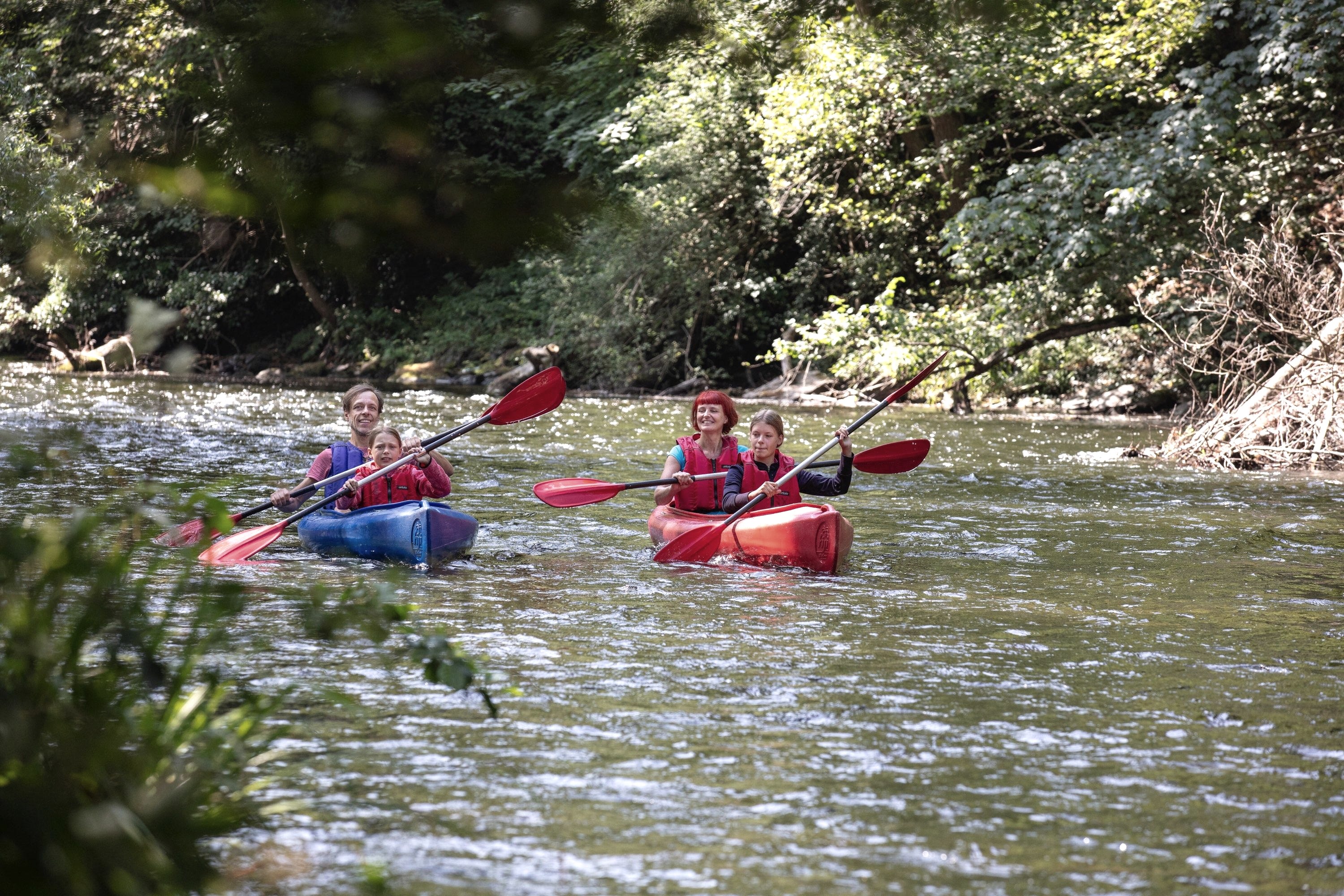 Spaß und Sportlichkeit bieten die gutmütigen und sehr kentersicheren offenen Doppelkajaks-darin lässt sich das Kanufahren in kurzer Zeit erlernen. Die Kanuschule Petry bietet seit 1990 Kanufahrten auf der Rur an, es stehen Boote und Ausrüstung für bis zu 140 Personen zur Verfügung. Nach einer ausführlichen theoretischen Einweisung und den anschließenden Trockenübungen geht es in Begleitung erfahrener Kanulehrer/Innen in kleinen Gruppen auf die Rur in Heimbach.