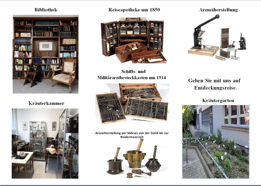 Im Museum laden eine umfangreiche Bibliothek und vor dem Museum der Heilpflanzengarten zum Verweilen ein. Das Museum ist Mitglied in der AG Pharmaziehistorische Museen & Sammlungen und besitzt ein Alleinstellungsmerkmal über den euregionalen Bereich hinaus.