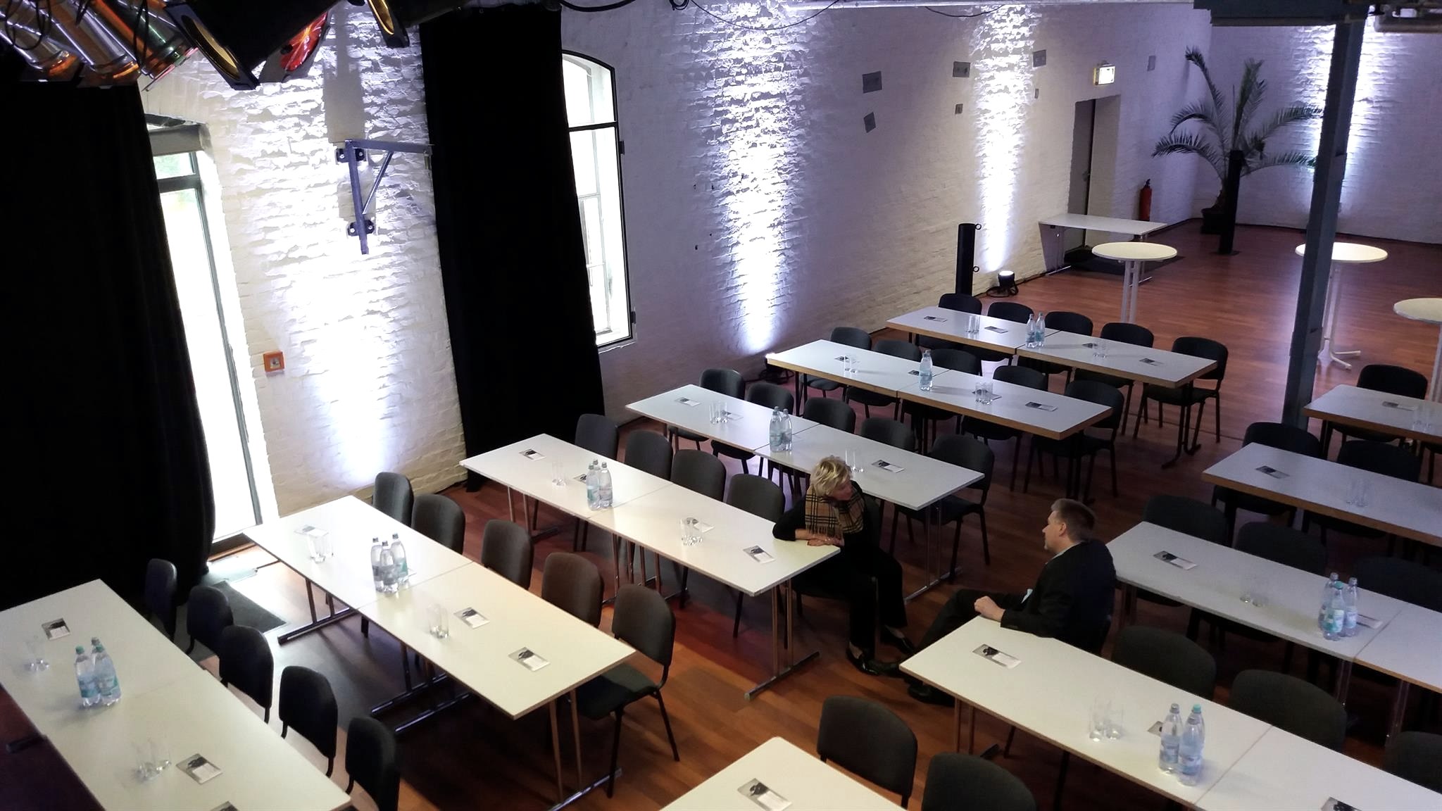 Kapazität: Reihenbestuhlung 50 Pn, Parlamentarisch:44 Pn, U-Form: 24 Pn, mit Zwischentischen: 32 Pn, Tischgruppen: 5 x 8er