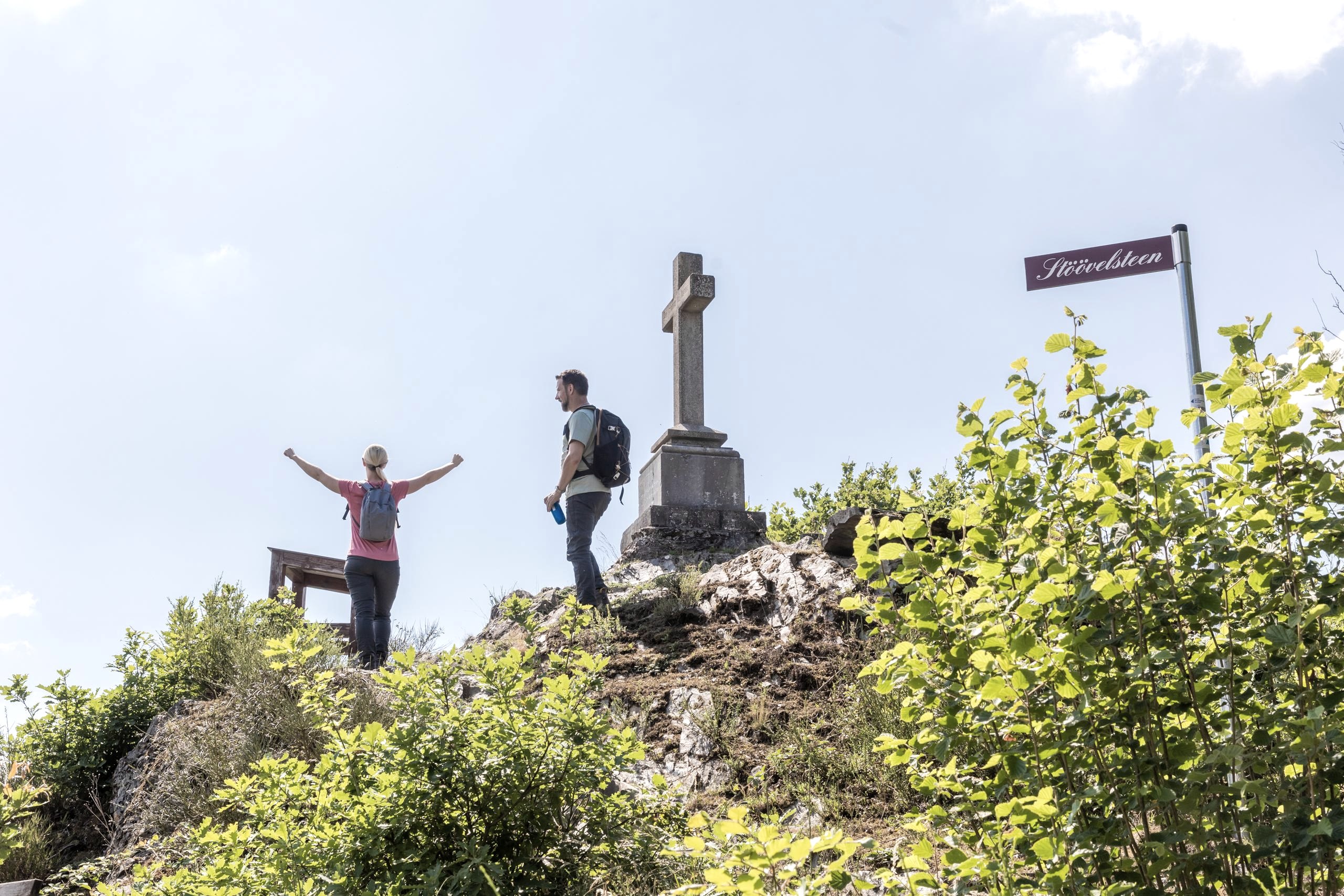 The view point "Schöne Aussicht" was named after the Prussian King Friedrich Wilhelm IV, who was very impressed by the view during a visit. The then District Administrator Bernhard Freiherr von Scheibler, who accompanied the king on this excursion, had a stone cross erected as a souvenir. The cross was destroyed during the war, but was then rebuilt. The base is from the original cross from 1887.