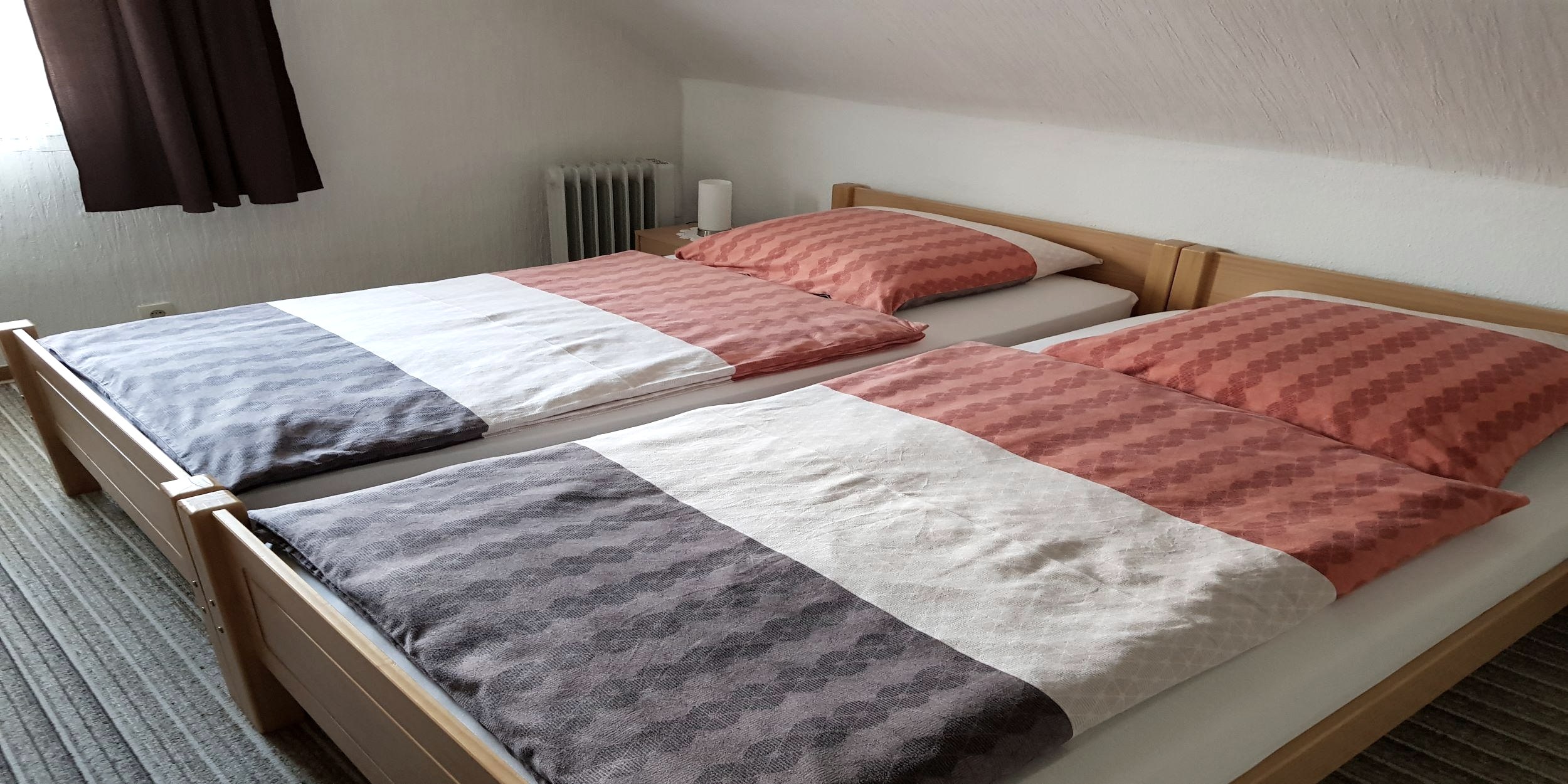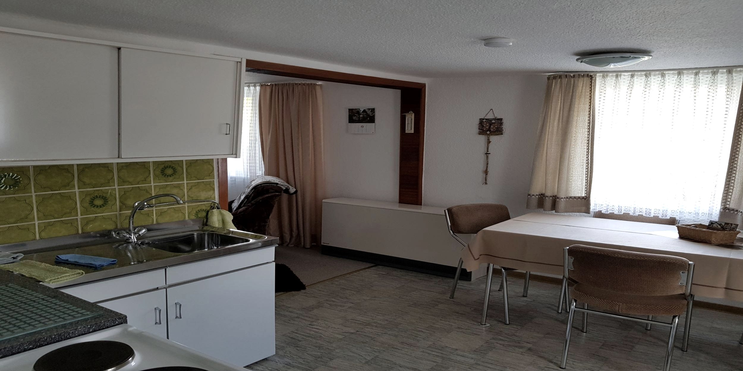 Small vacation apartment for 2 people in a quiet location. Fully furnished including bed linen, towels and kitchen towels. Non-smoking apartment. Parking lot at the house. Room height only 2m.