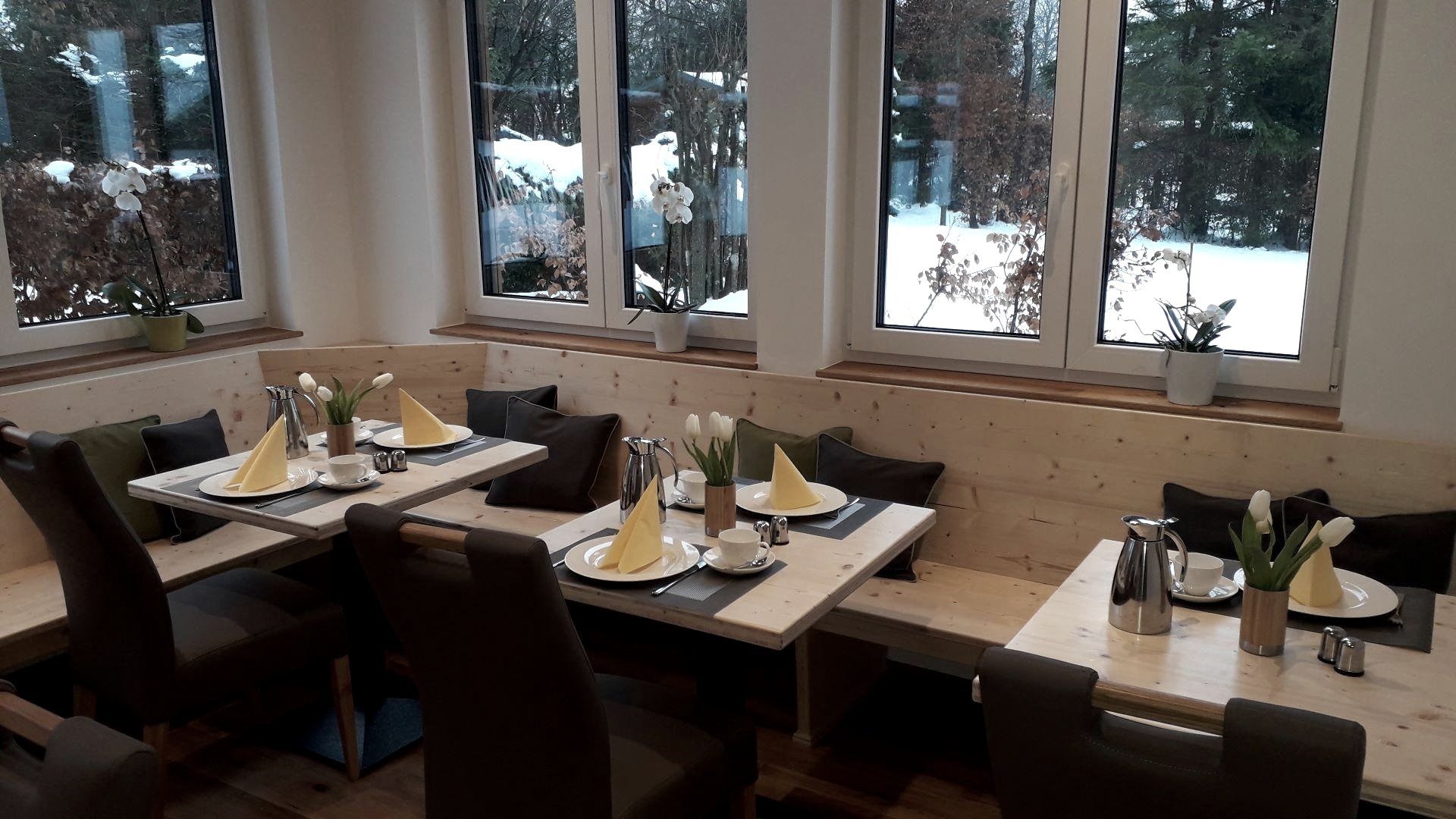 In our new comfortable breakfast room you start the day fresh and rested with a wonderful view of the nature.