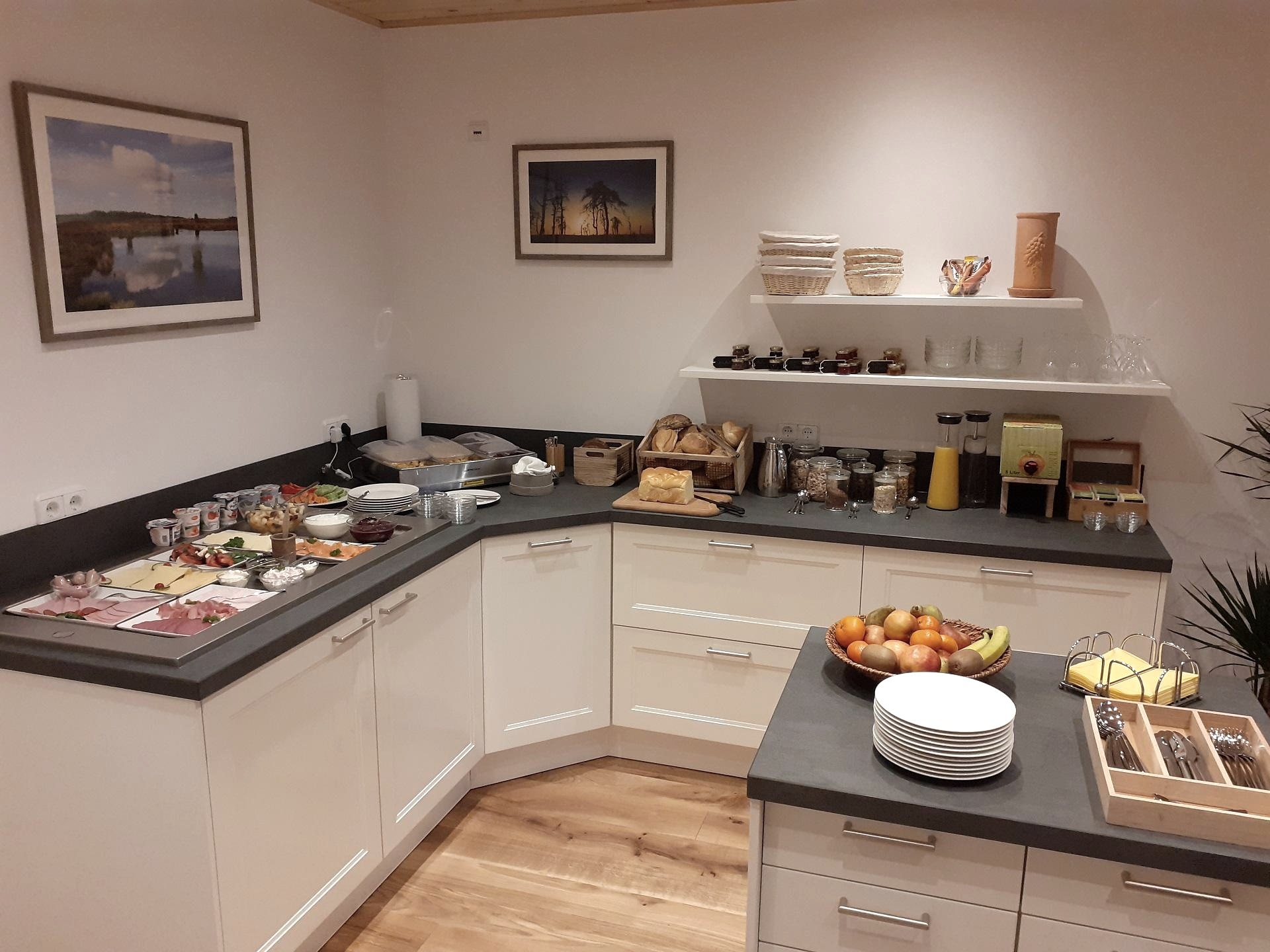 Enjoy our breakfast buffet daily from 8 am. Besides fresh rolls and bread from the local baker and regional sausage and cheese specialities, we also offer homemade jams and honey from the Eifel beekeeper. Our rich breakfast buffet includes different kinds of muesli, seasonal fruits and vegetables and … eggs from our own chickens. We serve fresh coffee, different kinds of tea and juice.