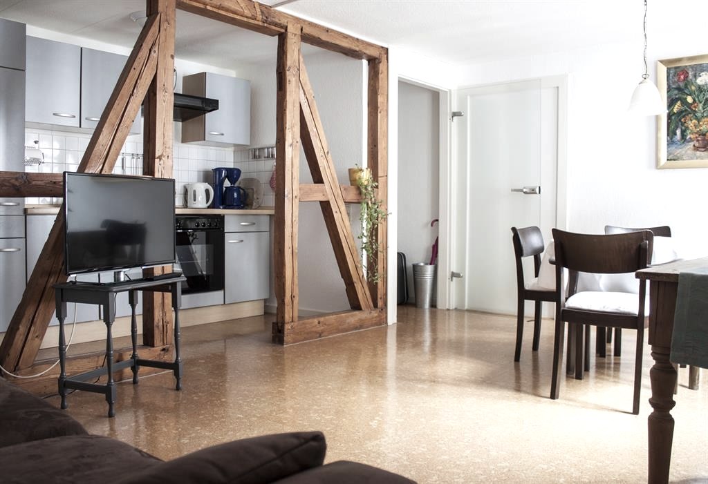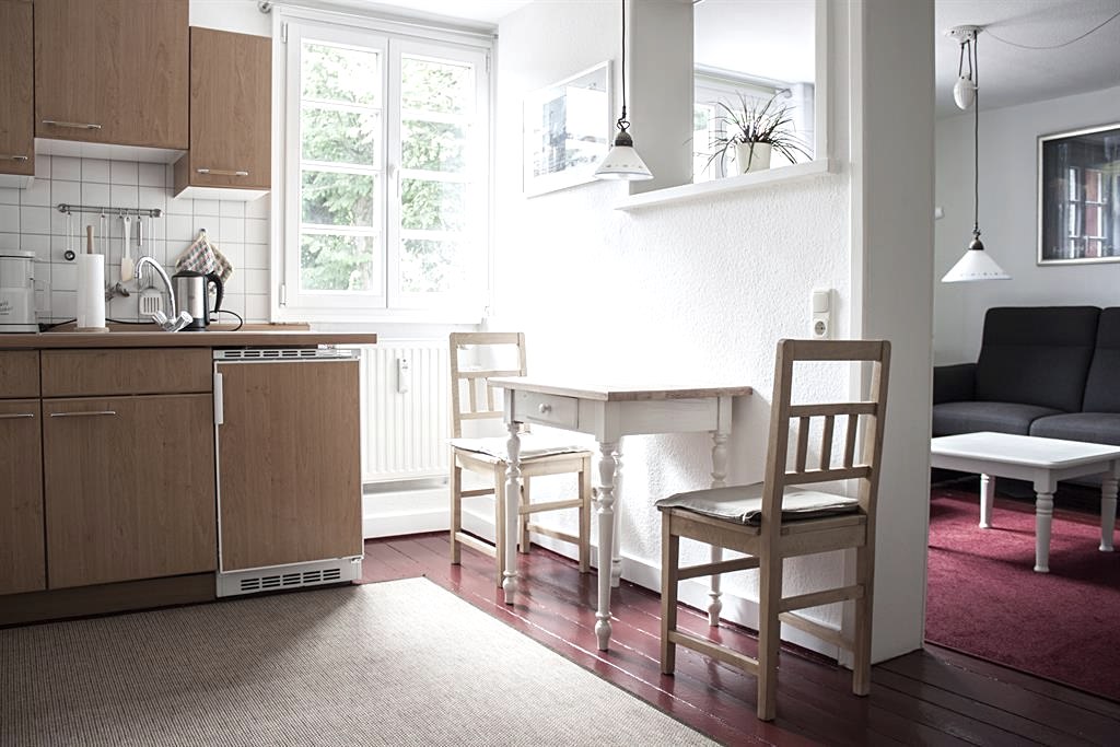 Five individually furnished, cozy apartments. A restaurant is located on the first floor of the house, two breakfast cafés directly opposite. The house is suitable for small groups of up to 12 people.