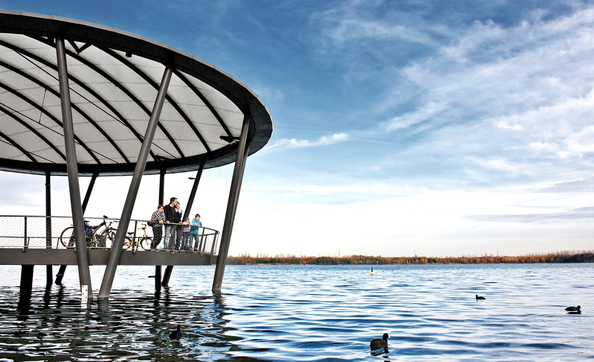 To reach the Indemann, which is about one kilometer from the route, do not turn right at the church in Inden-Lamersdorf into "Schwarzer Weg", but leave the route and cycle diagonally right over the bridge. Then follow the general signs to the Indemann. You can reach the shore of the Blausteinsee by turning off at junction 67 in the direction of junction 82 instead of junction 79. After about one kilometer, you will reach Seeuferstraße, which will take you left to the lakeshore and the lake stage.