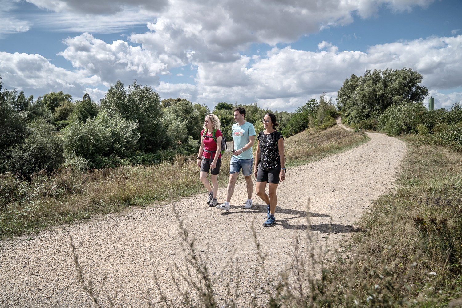 However, to reduce the route solely to the newly created lake and the idyllic landscape surrounding it would be too short-sighted. There is also plenty to discover away from the water: the Indemann on the Goltsteinkuppe, visible from afar, offers the viewer a spectacular panoramic view of the indeland. The 36-metre-high landmark points with its arm to the constantly changing landscape of the Inden open-cast mine. If you are interested in the topic of open-cast lignite mining, we recommend a detour to the RWE Info Center in the Weisweiler lignite-fired power station, which is located along the route. Here, the process sequence from lignite mining to electricity generation and the development of a sustainable recultivated open-cast mine is shown. Numerous (moated) castles along the route, such as Haus Kambach, Kinzweiler Castle and Haus Palant, are reminders of times gone by when dukes and knights roamed the land.
