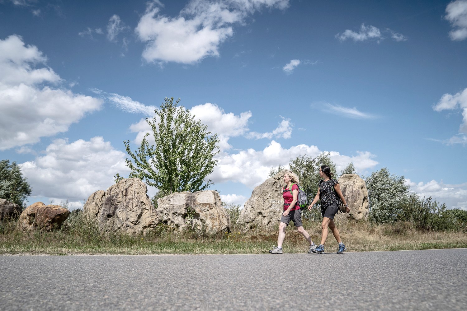 The Blausteinsee route leads around the Blausteinsee lake, which was created as part of the recultivation of the Zukunft-West open-cast mine. Where once there were villages and fields, there is now the approximately 100-hectare, 46-metre-deep Blausteinsee lake, offering bathing fun for the whole family. Diving, sailing, surfing, swimming, canoeing - the lake leaves nothing to be desired for water lovers. Memorial stones and wayside crosses on the paths around the lake and the surrounding green belt are reminders of the places that once existed and had to make way for the advancing open-cast mining.