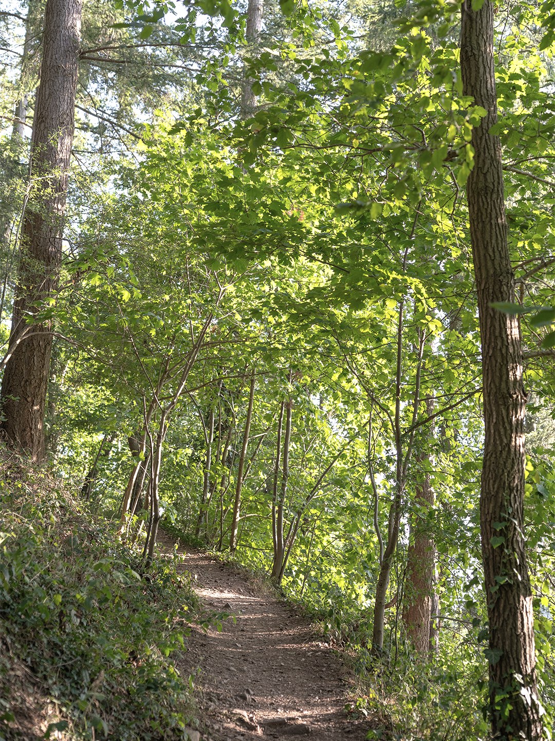 The road takes its name from the post-war period, when coffee smuggling from Belgium was one of the most important sources of income for the people of Schmidt. Schmidt was over 90% destroyed at the end of the Second World War, including the parish church of St. Hubertus. With the profits from smuggling coffee across the nearby border, the people of Schmidt got their families through and rebuilt their destroyed houses. Of course, this did not go unnoticed by the parish priest at the time, Josef Beyer. The reconstruction of the church initially progressed somewhat less quickly. He said in a sermon: "I know that you are getting a headache from all the money. For me it's the other way around, because I don't know where I'm going to get the money to rebuild the church." From now on, the smugglers sacrificed part of their profits from the coffee business to rebuild the church.