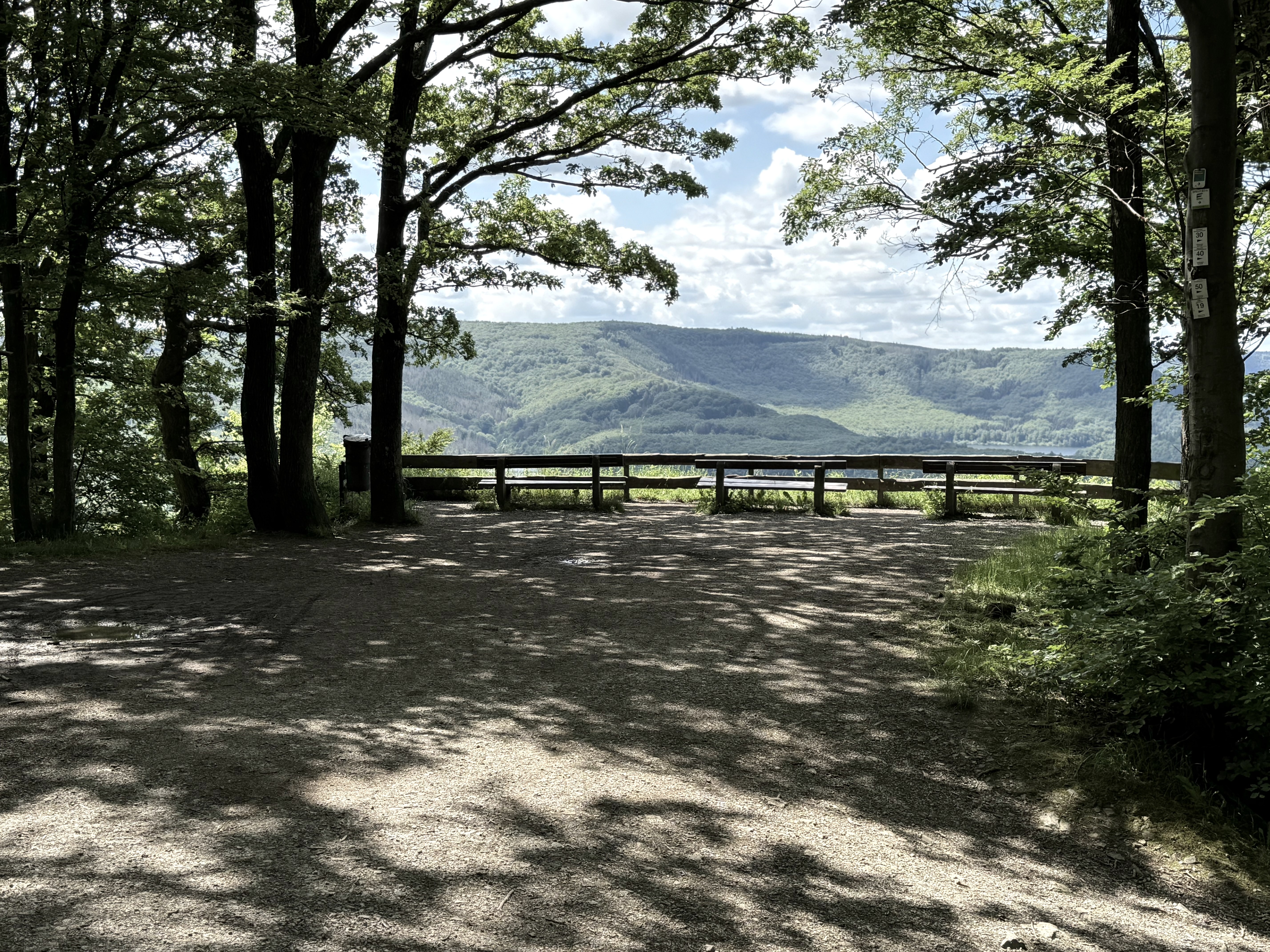 The hike starts at the church. We only follow the signs no. 20. We walk down towards the Rursee, via Scheidtbaum to Harscheidt, then slightly uphill back to the starting point. Along the way, there are beautiful panoramic views of the Rursee and Nideggen, Brandenberg and Bergstein to marvel at.