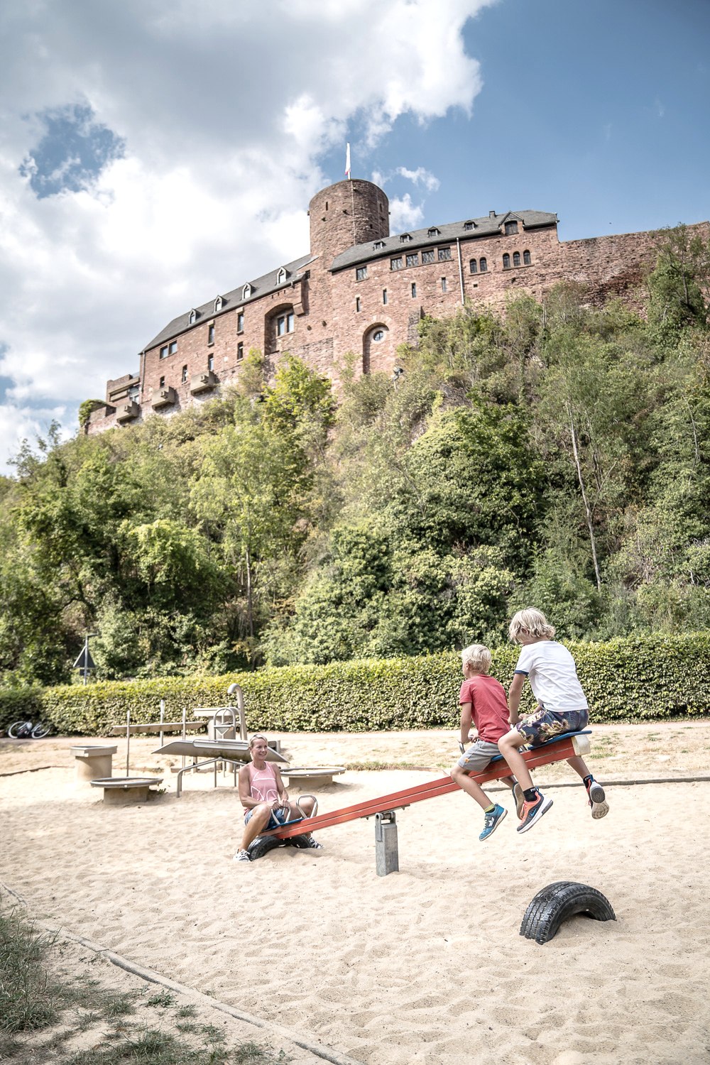 From the Über Rur parking lot, we take the paved path closest to the water and follow it through the spa gardens to the Heimbach reservoir. We pass the small leisure facility and then follow the hiking trail along the reservoir. After about 2 km, we reach the district of Hasenfeld. We walk along the road past the campsite, follow Kleestraße uphill and turn left at the bend to the right onto the hiking trail, which takes us back to the reservoir after a few 100 m. As we continue, we pass a clearing with a barbecue hut and access to the water. After a few minutes, we reach the stilling basin and approach the end of the reservoir. After a left-hand bend, we find ourselves on the path at the foot of the Schwammenauel dam; on the other side of the dam wall is the Rursee lake. After another left-hand bend, the path now runs below the vacation village. At the next junction, you have the option of turning right through the vacation village up to the Schwammenauel landing stage and taking a boat trip on the Rursee or stopping for a bite to eat there. On our way back, we pass the art nouveau Heimbach power station, which still supplies the Eifel with electricity and regularly hosts "Spannungen", an annual chamber music festival. We continue straight ahead and follow the Langerscheidt road and the Seerandweg, which bring us back to our starting point after a good 8 km.