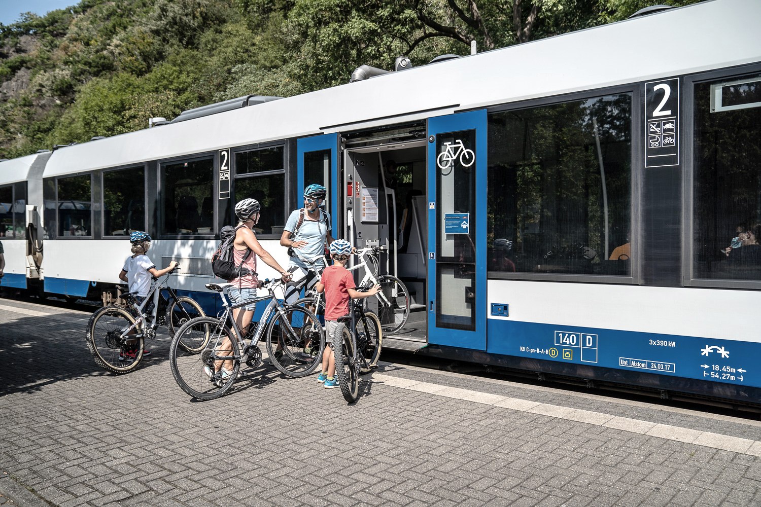 After about two thirds of the route, you reach the Jugendstik power station in Heimbach, which was put into operation in 1905 and draws its water from the Urft dam via the Kermeter tunnel, which merges into two pressure pipes 110 m above the power station. The power station is still in operation today. The original equipment with eight turbines was replaced in 1975 by two new machines with higher efficiency. Since then, the plant has had an installed capacity of 16,000 kilowatts to cover peak loads. Some of the old machines are still in place, as the new generators take up much less space.