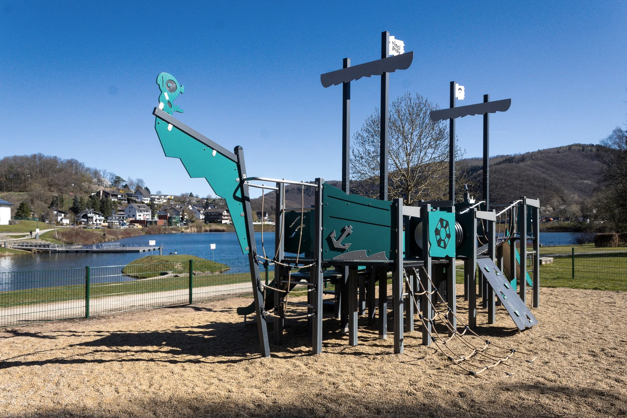 There is the popular natural swimming pool, whose clear water is appreciated by all visitors. The laid-out sandy beach with a shallow water zone for children and a playground leaves nothing to be desired for exuberant water fun for young and old. Everyone will find a place on the spacious bathing area, whether in the sun or under one of the numerous beautiful trees. In the summer months, the DLRG (German Lifeguard Association) is on site and watches over the bathing operations (in the summer holidays in North Rhine-Westphalia and on the weekends from May to August.