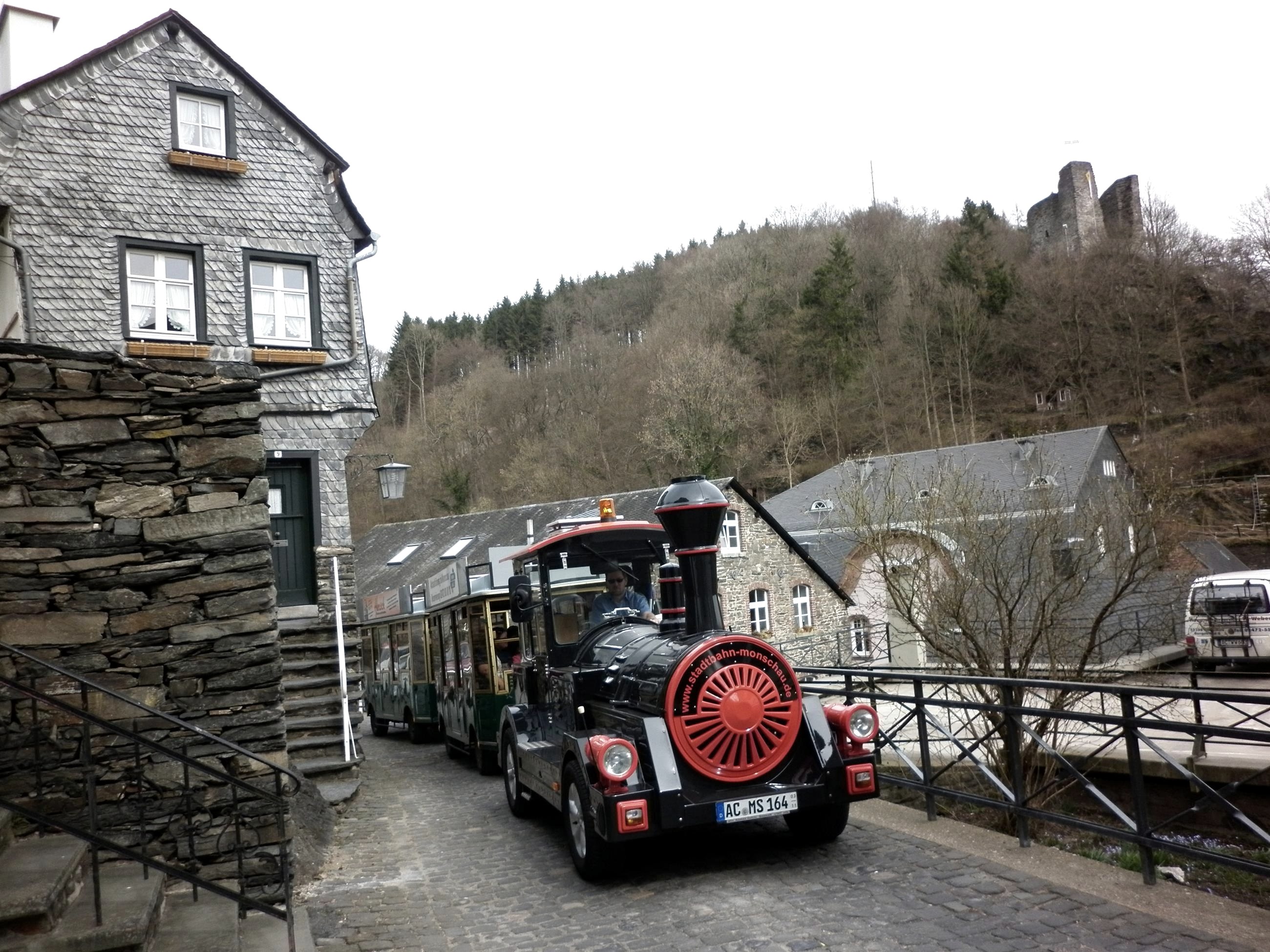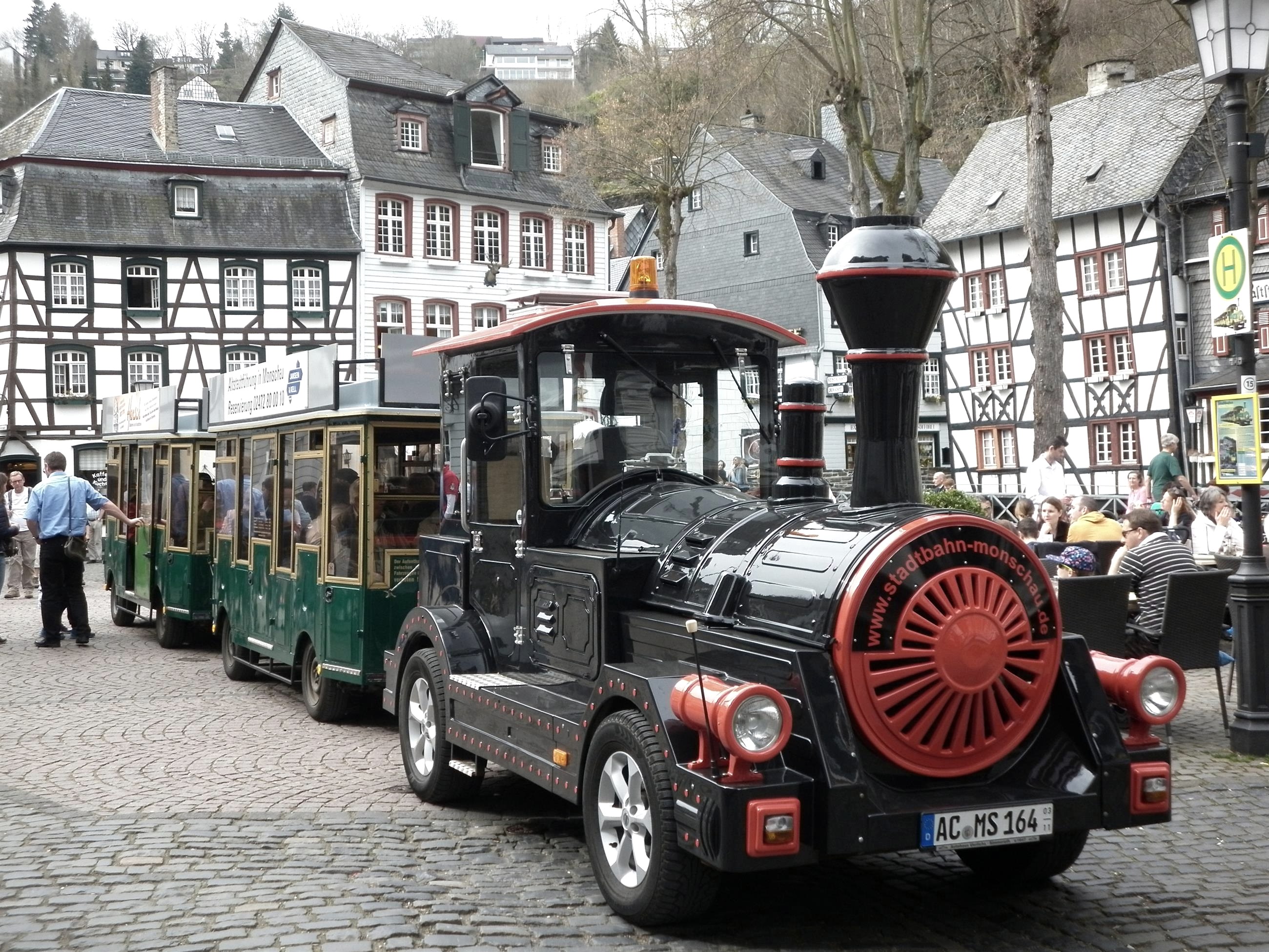Why would you want to explore Monschau's sights on foot when you can take the city train in comfort and be informed about the history of the cloth-making town. During the 30-minute round trip we will show you Monschau and drive up to the castle, where you can enjoy the panorama overlooking the town in the valley and the Haller ruins.