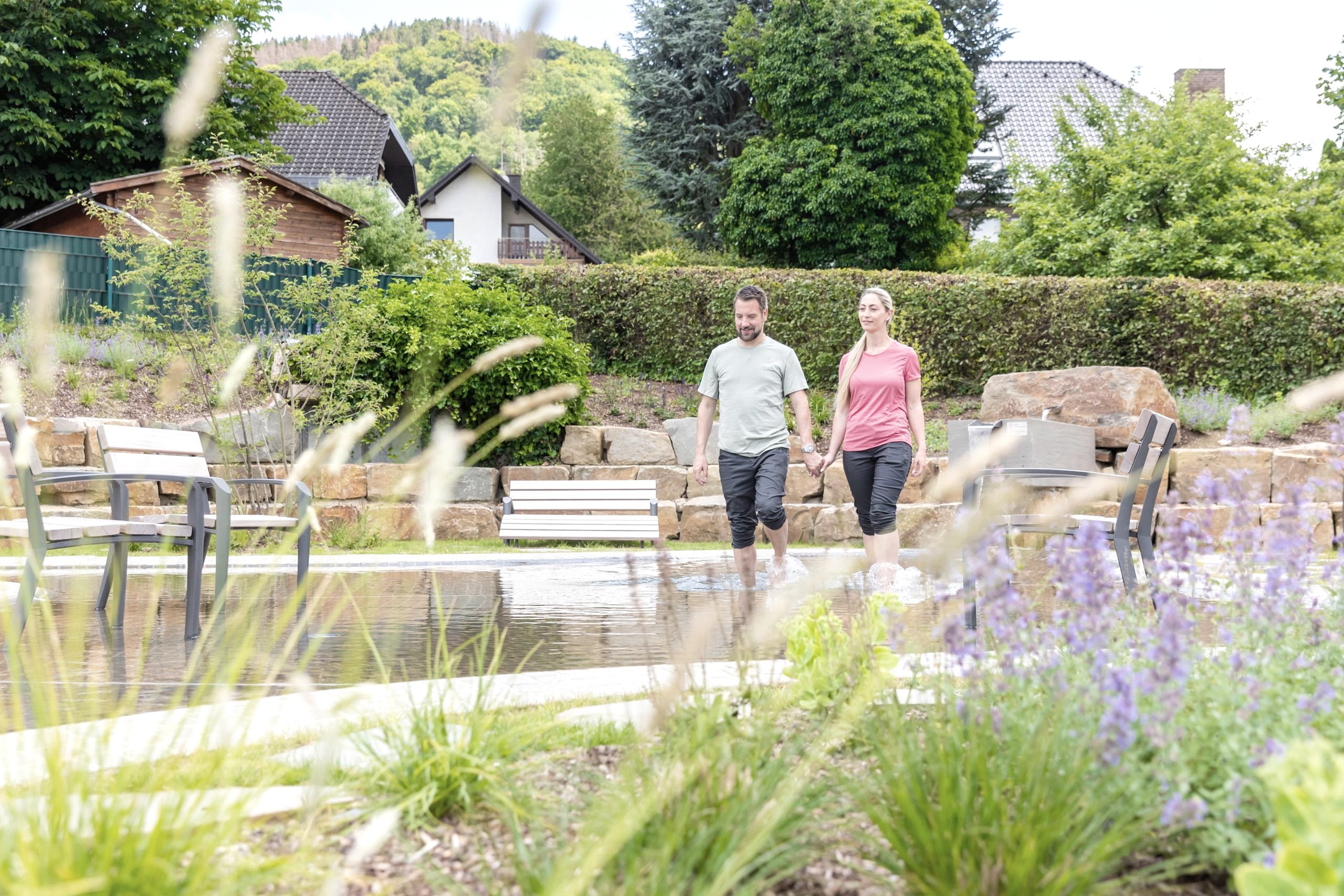 In addition to these elements, there are plenty of places to sit and relax in the charming, newly created green area. Especially after a long hike or bike ride, the water garden allows for extensive relaxation.