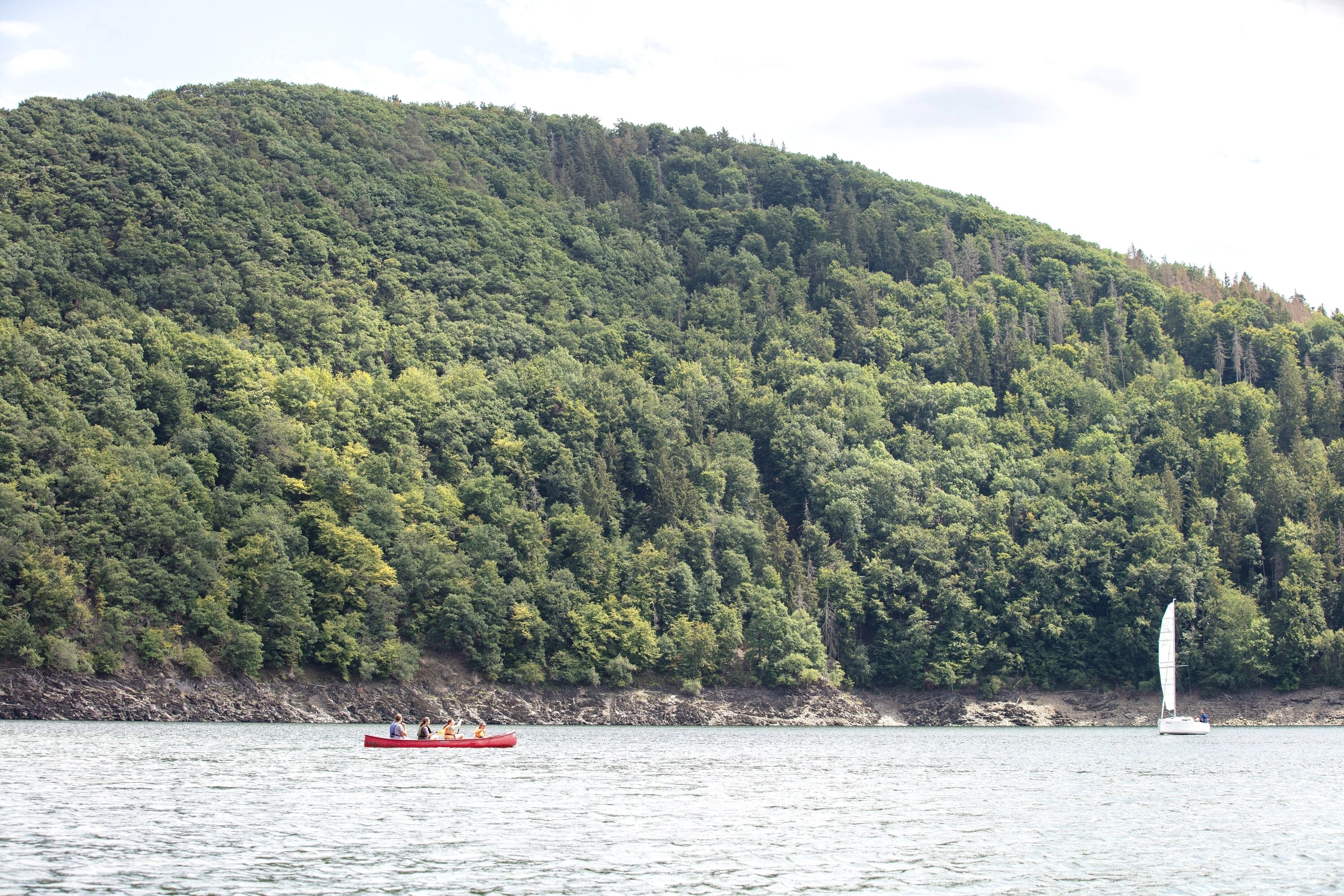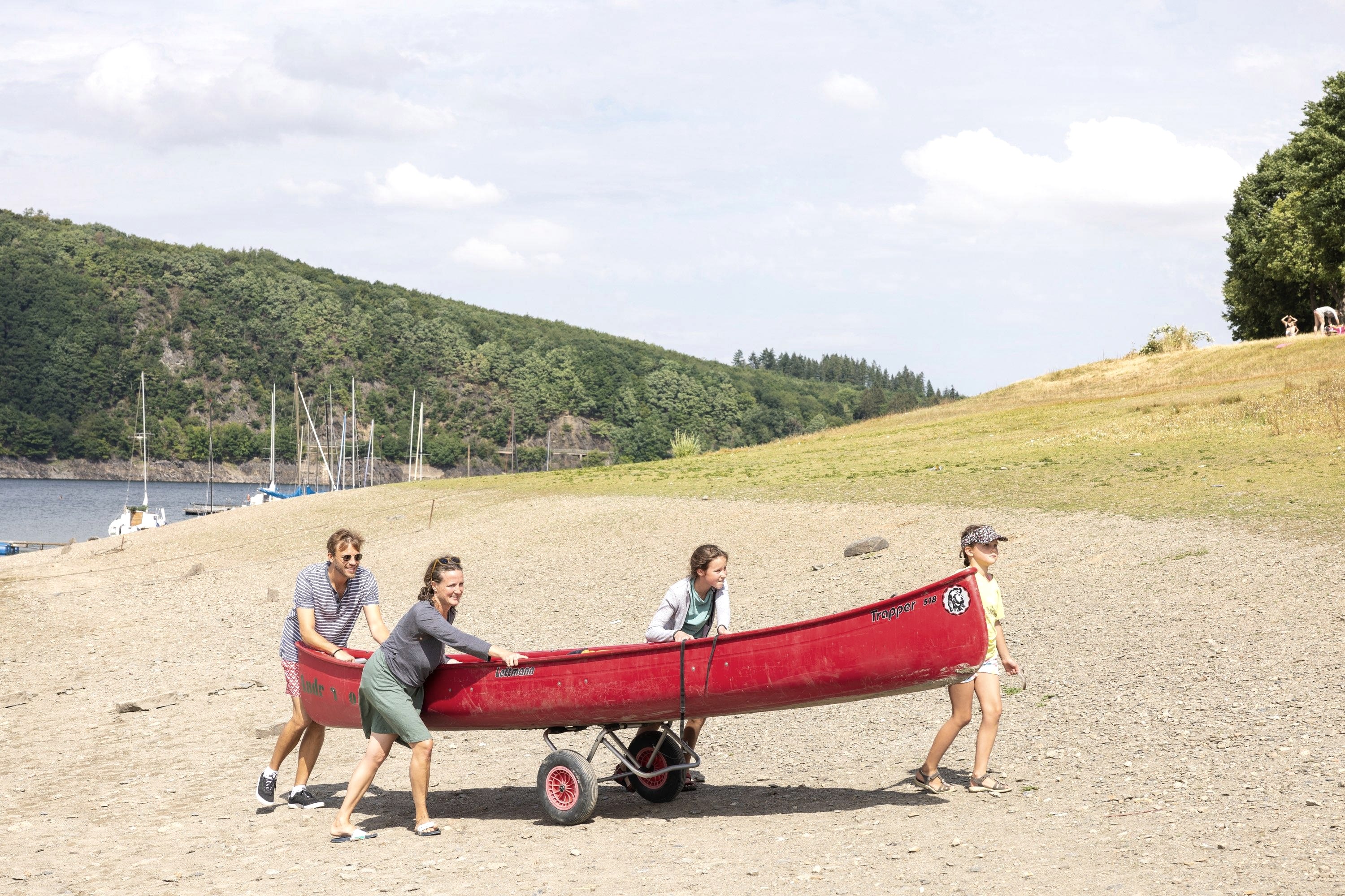 Dans la baie de Woffelsbach, des canoës, des kayaks, des SUP et des pédalos peuvent être loués au NaBeDi-Camp. Depuis Woffelsbach, de nombreuses possibilités s'offrent à toi pour explorer le lac de la Roer. Que ce soit un tour en pagaie en direction d'Eschauel ou un tour tranquille en SUP en direction de Rurberg, chaque passionné de sports nautiques ou débutant en la matière trouvera ici l'occasion de tester ses capacités. Contempler et explorer le parc national de l'Eifel environnant depuis l'eau est tout simplement fascinant. Pour plus d'informations sur les prix et les heures de location, consultez le site web du NaBeDi Camp.