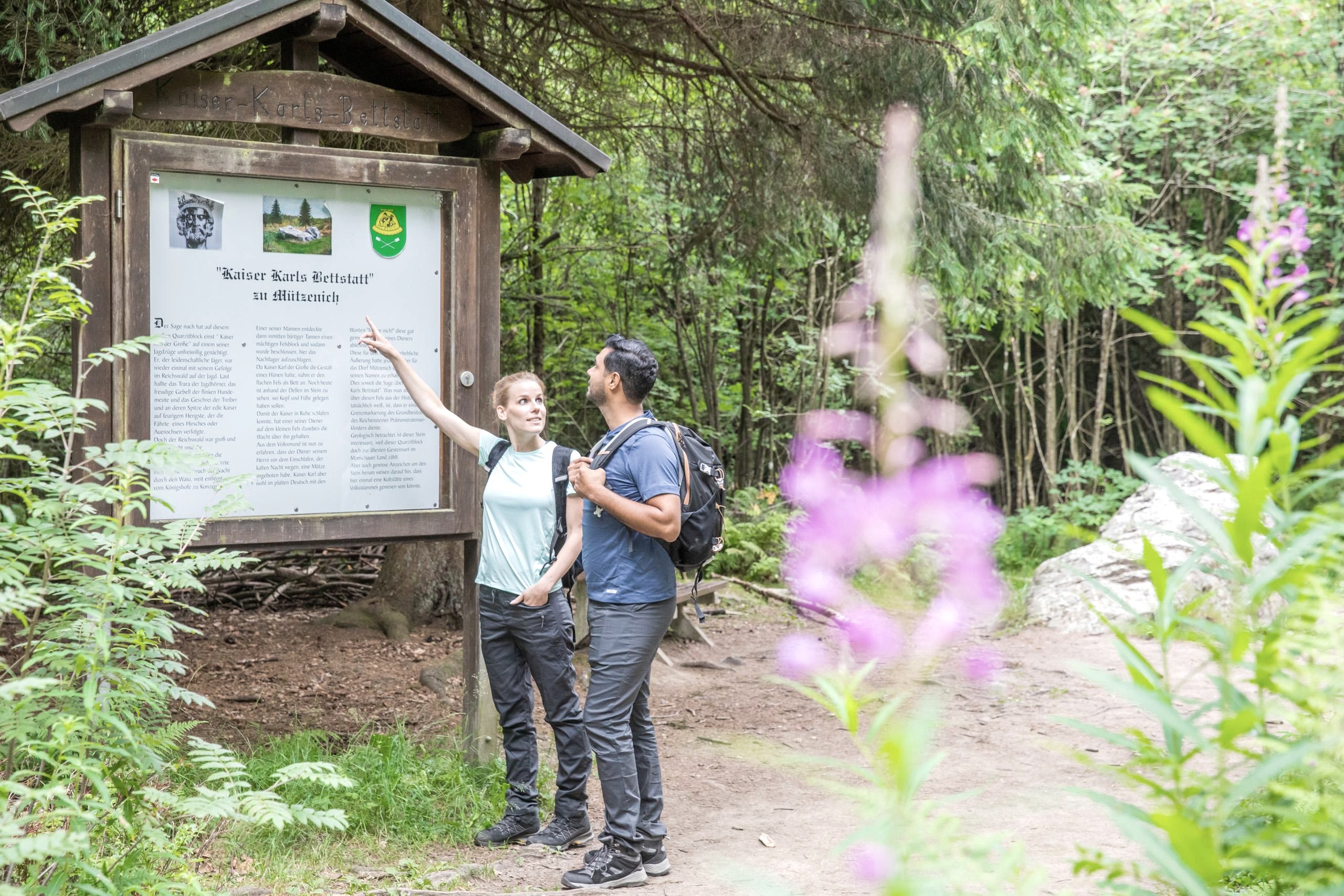 Selon la légende, alors qu’il avait quitté sa résidence proche d’Aix-la-Chapelle pour participer à une partie de chasse dans les Hautes Fagnes, l’empereur Charlemagne se serait égaré dans la campagne et aurait été ainsi contraint de dormir sur ce gros monolithe de quartz. Le rocher se trouve près du village de Mützenich, non loin de la frontière franco-belge. Il continue de s’appeler « Kaiser Karls Bettstatt » (couche de l’empereur Charlemagne).