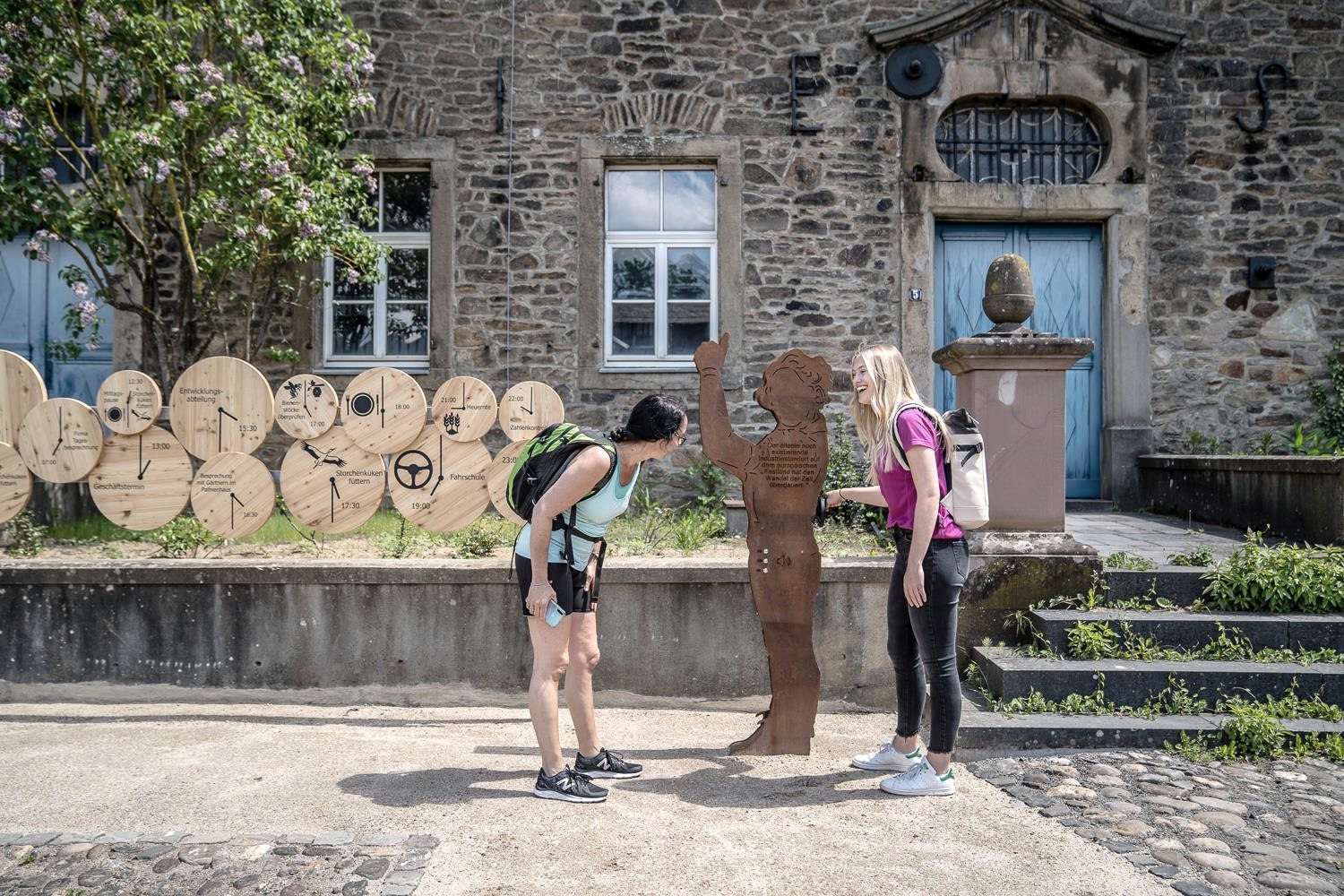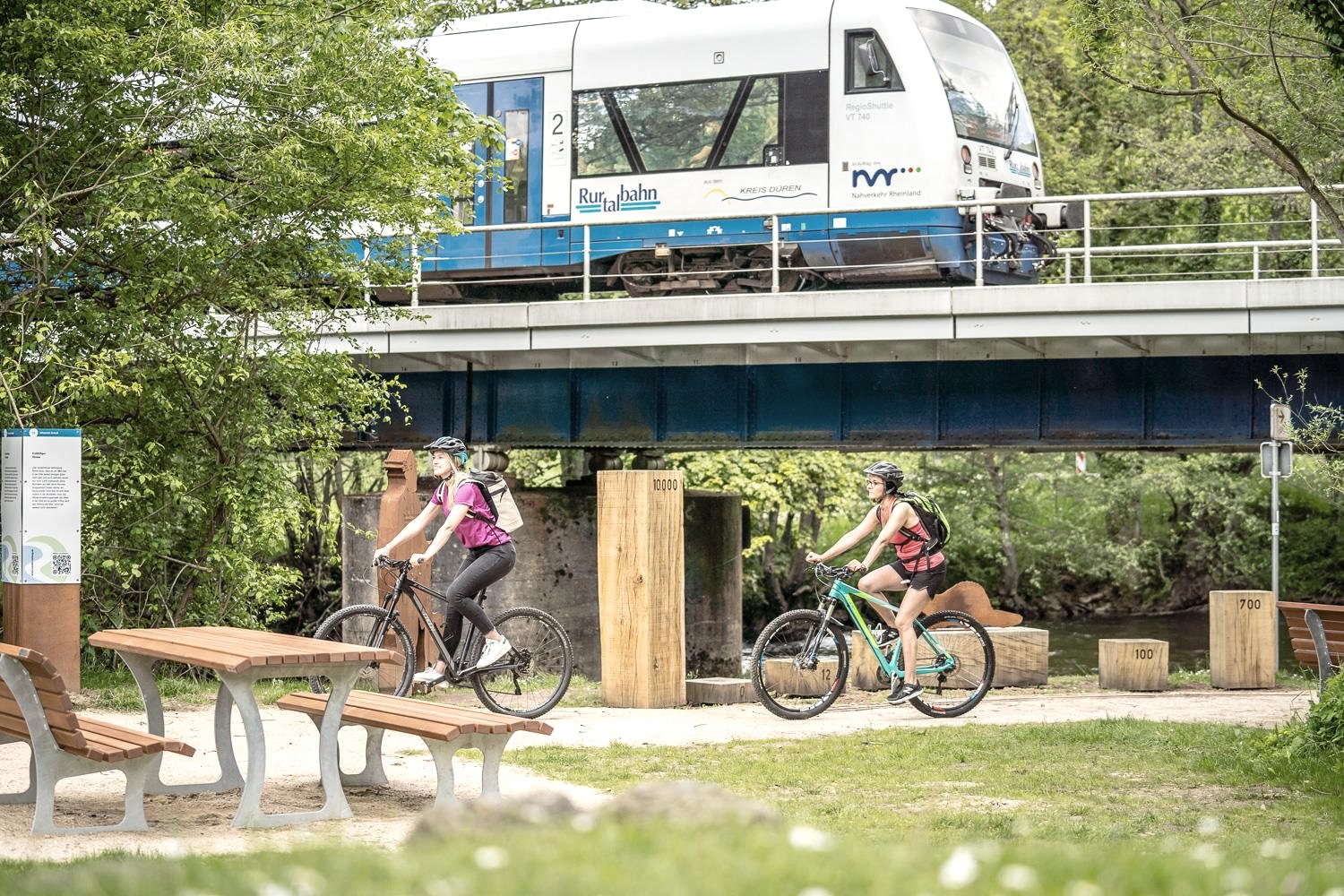 Accompagnez la Roer sur la piste cyclable RurUfer à travers l'arrondissement de Düren et découvrez comment la vie dans la région et le paysage ont évolué au fil des siècles. Sur un total de 18 stations de repos et de découverte, dont 8 dans l'arrondissement de Düren, des personnages narratifs vous racontent clairement, par exemple, comment l'électricité est arrivée dans l'Eifel, pourquoi Hermine Hoesch a présidé aux destinées de l'entreprise à la place de son mari, comment Düren est devenue la "Mecque" de l'industrie du papier et quels changements l'exploitation à ciel ouvert a entraînés pour les familles qui y habitaient.