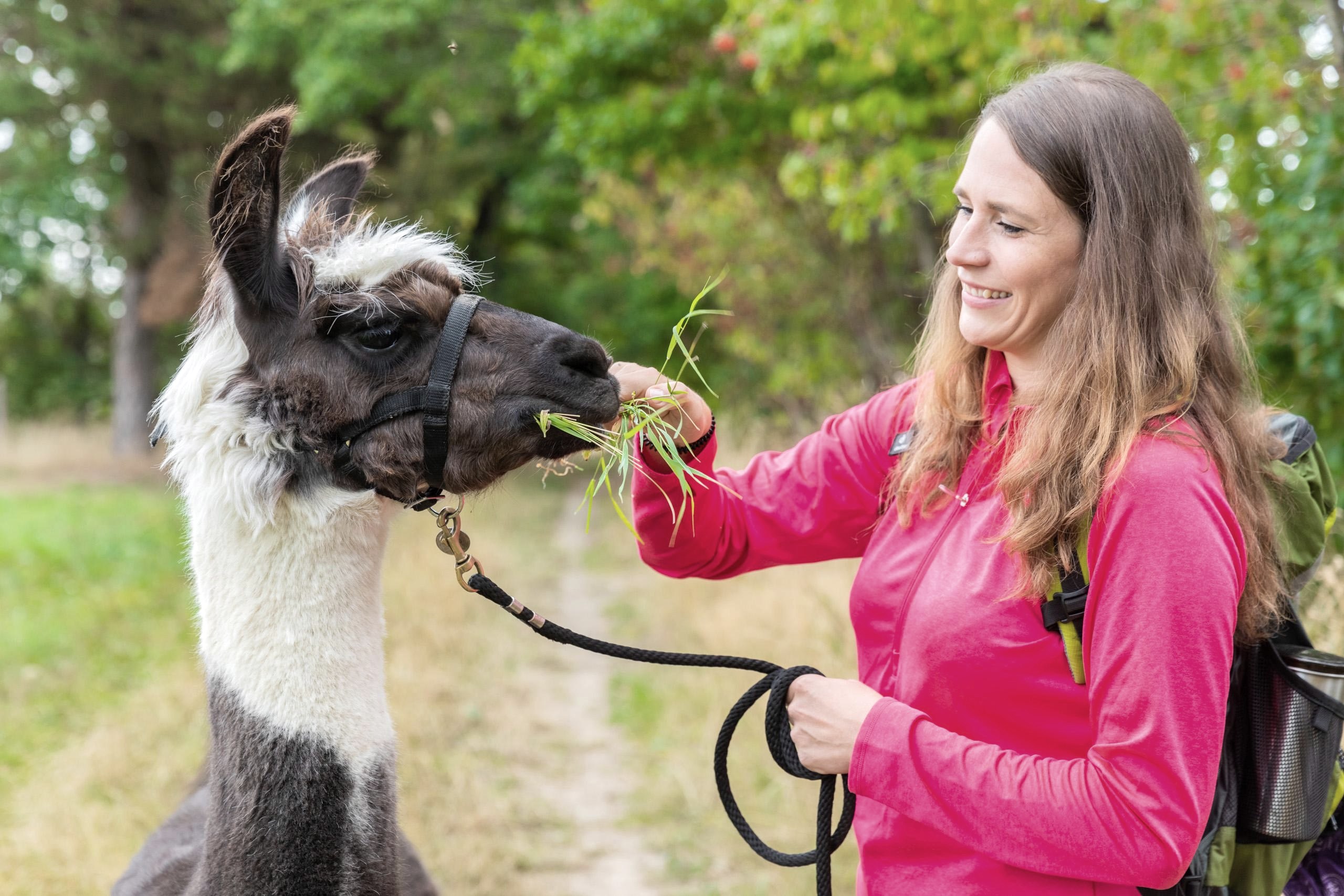 Nos randonnées se déroulent en grande partie sur des chemins de forêt et de prairie à travers l'Eifel. Après une introduction sur l'espèce et la nature de nos lamas et alpagas, vous ferez plus ample connaissance avec ces êtres insouciants et doux pour vous préparer à la randonnée. Appréciez la magnifique nature de l'Eifel à travers différentes impressions saisonnières avec des paysages et des vues changeants à un rythme de marche tranquille.