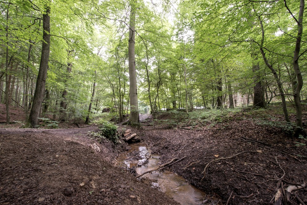 La localité de Langerwehe est située à la limite nord de l'Eifel, là où la moyenne montagne se transforme en paysage de bourses. On y trouve de belles vues de la lisière de la forêt sur la bourses marquée par l'agriculture et l'exploitation à ciel ouvert. Le château de Merode, dont les origines remontent au 12e siècle, a donné son nom à ce circuit VTT. Aujourd'hui, il se présente dans le style Renaissace et est considéré comme l'un des plus beaux châteaux d'eau de Rhénanie. Il ouvre ses portes les jours de manifestations comme le marché de Noël, le British Flair, le pique-nique dans le parc et quelques autres événements. Le château de Laufenburg vaut également le détour. Il a probablement été construit au 12e siècle pour protéger le monastère de Wenau et abrite aujourd'hui un restaurant. La localité de Langerwehe est connue pour son musée de la poterie, situé dans l'ancien presbytère du Rymelsberg, qui abrite une belle collection, et à proximité duquel se trouve la vieille église, à l'intérieur de laquelle il faut jeter un coup d'œil.