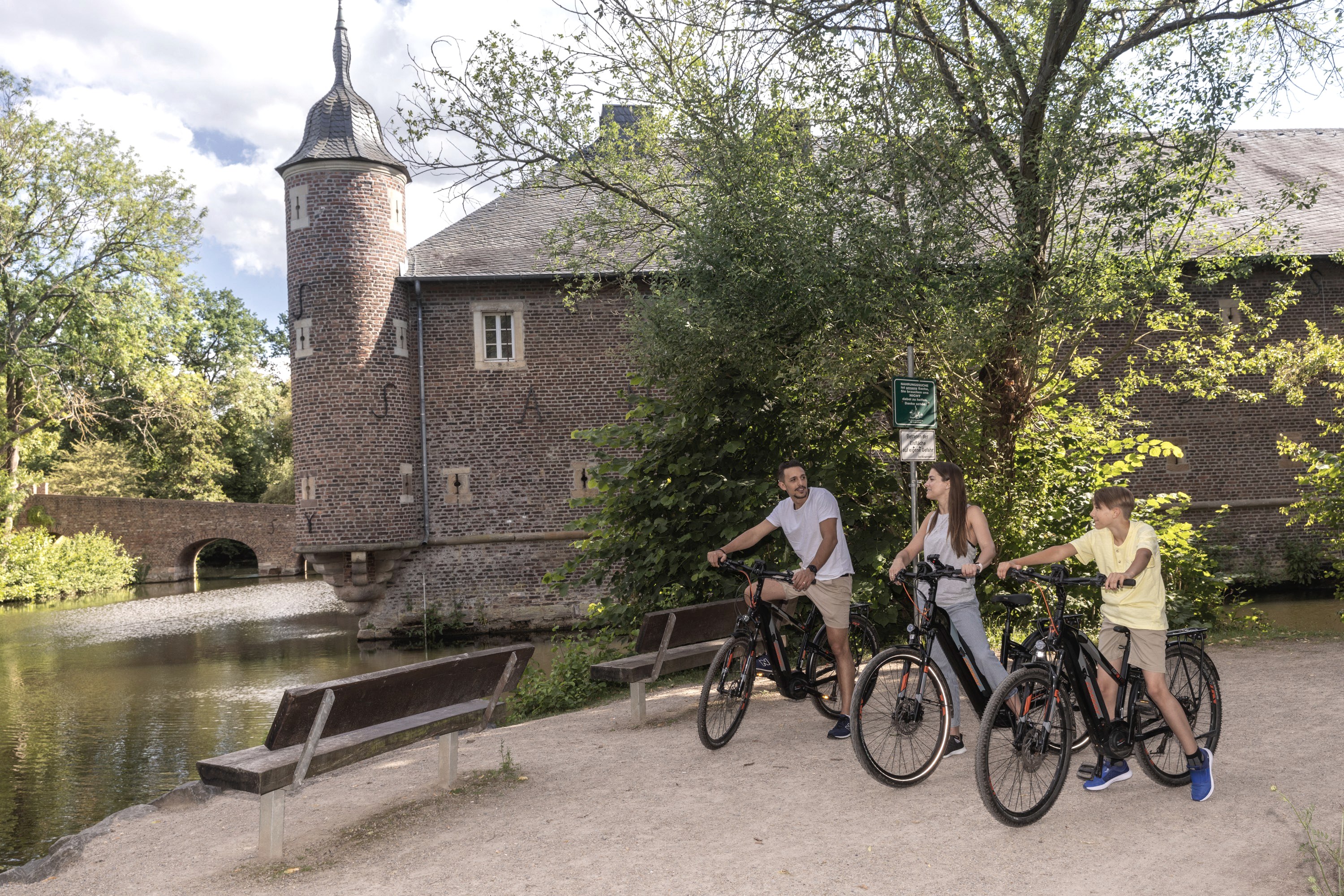 A tout juste deux kilomètres de la gare, au bout de la Tivolistraße (carrefour 9), vous arrivez sur la piste cyclable RurUfer. Vous serez accompagné par la Roer sur la gauche et par beaucoup de verdure sur la droite. Le circuit vous fait passer devant la belle réserve naturelle du Merkener Busch. Cette zone forestière abrite de nombreux animaux sauvages. Avec un peu de chance, vous pourrez y découvrir l'un des castors réintroduits.