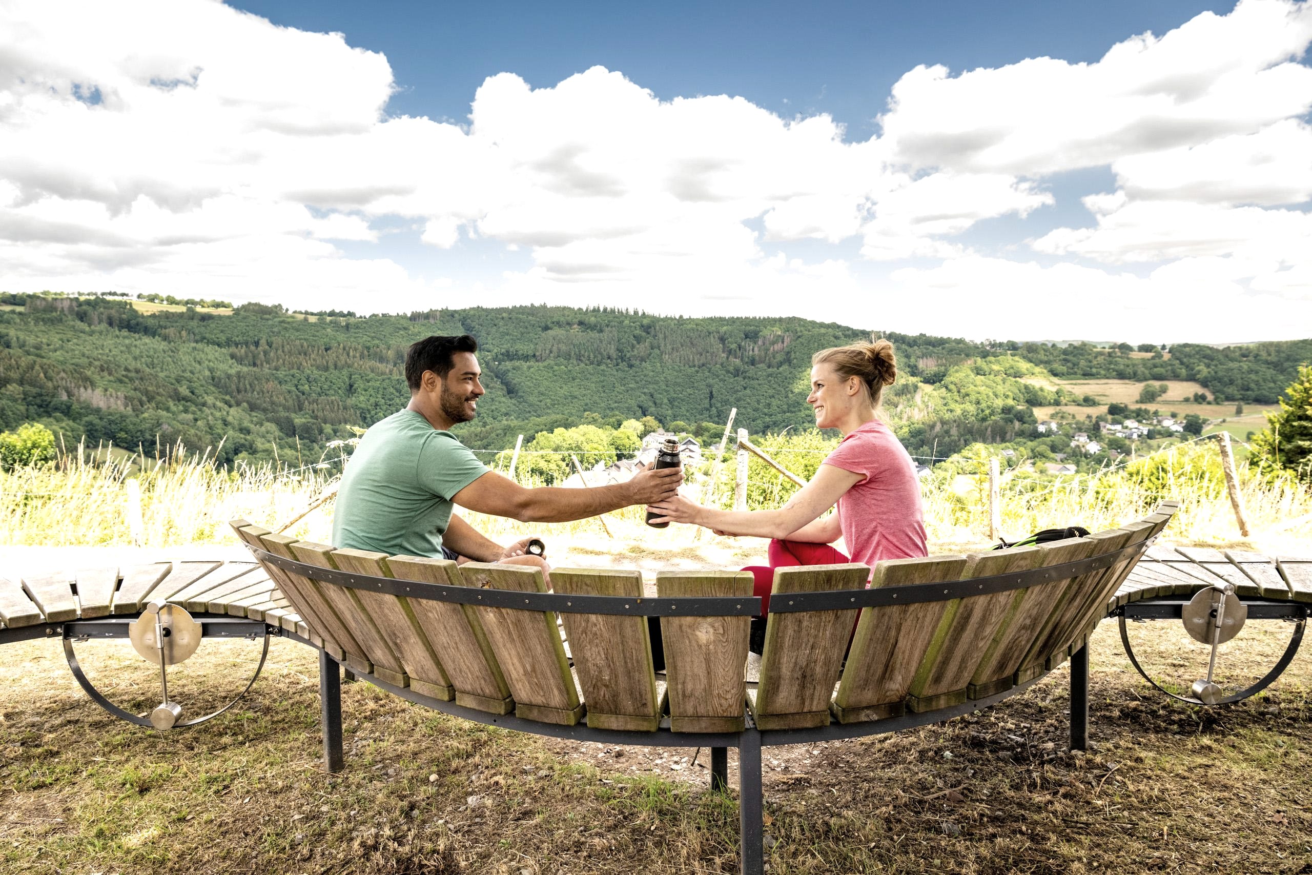 L'aire de repos et de découverte du sentier de l'Eifel invite à s'attarder avec sa vue particulièrement belle sur la vallée idyllique de la Roer en amont de Dedenborn.