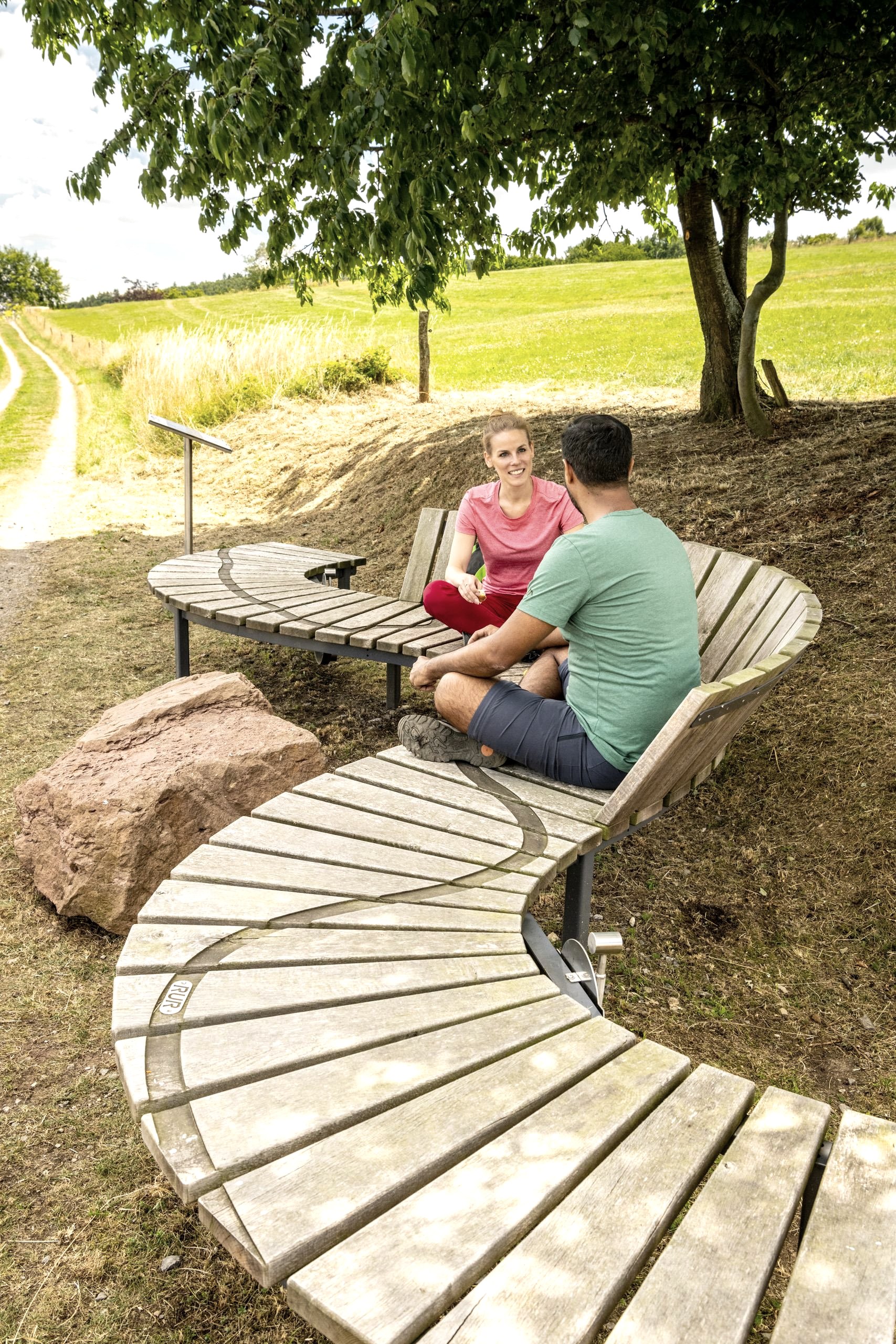 La forme particulière du banc qui se trouve ici s'inspire des méandres de la Roer, le cours exact de la rivière est visible sur le banc et reflète le paysage qui se trouve dans le champ de vision. Une autre particularité est le pendule qui se trouve sur le banc.