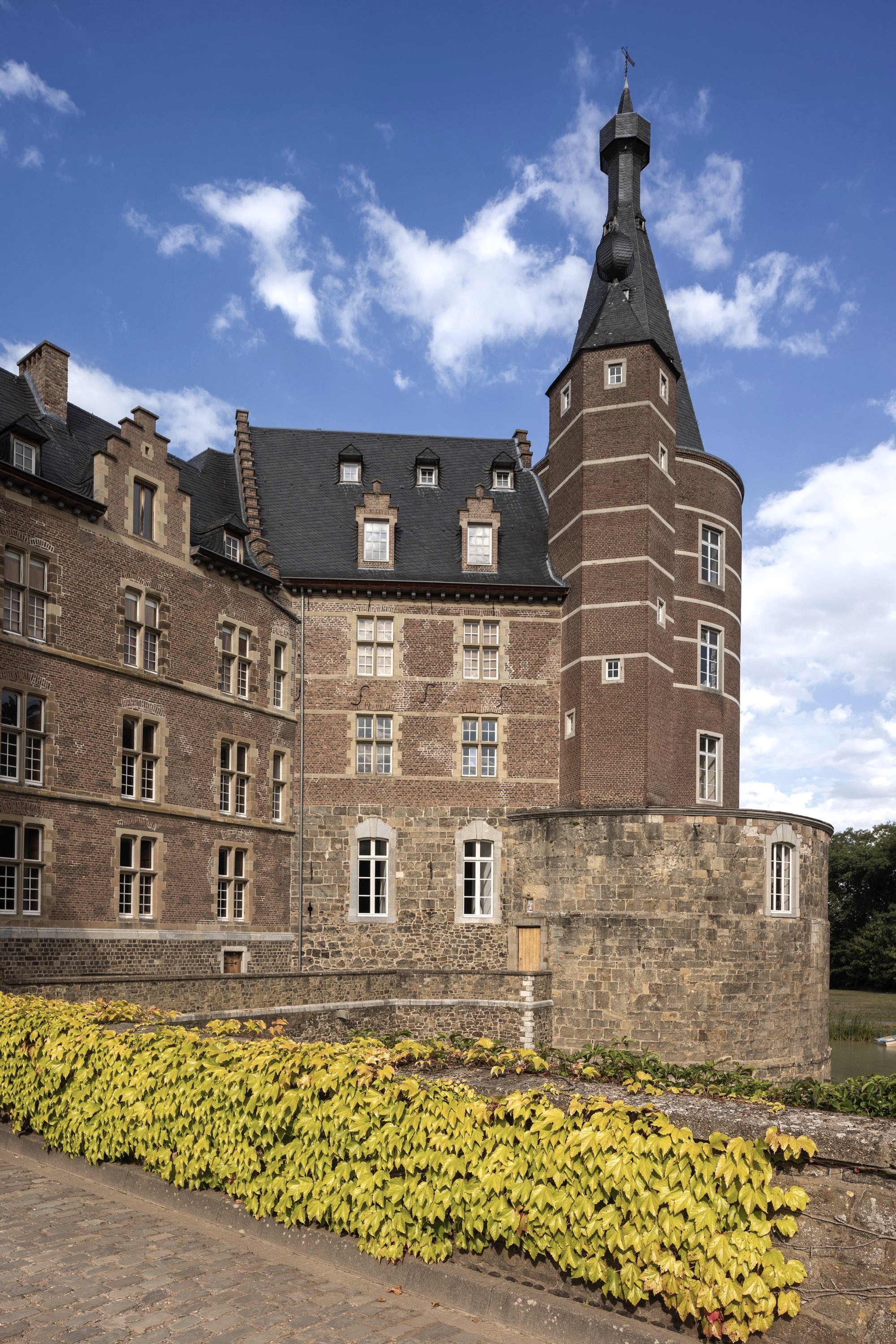 Kasteel Laufenburg, een kasteel op een heuvel met een aangrenzend restaurant, ligt midden in het bos rondom kasteel Merode.