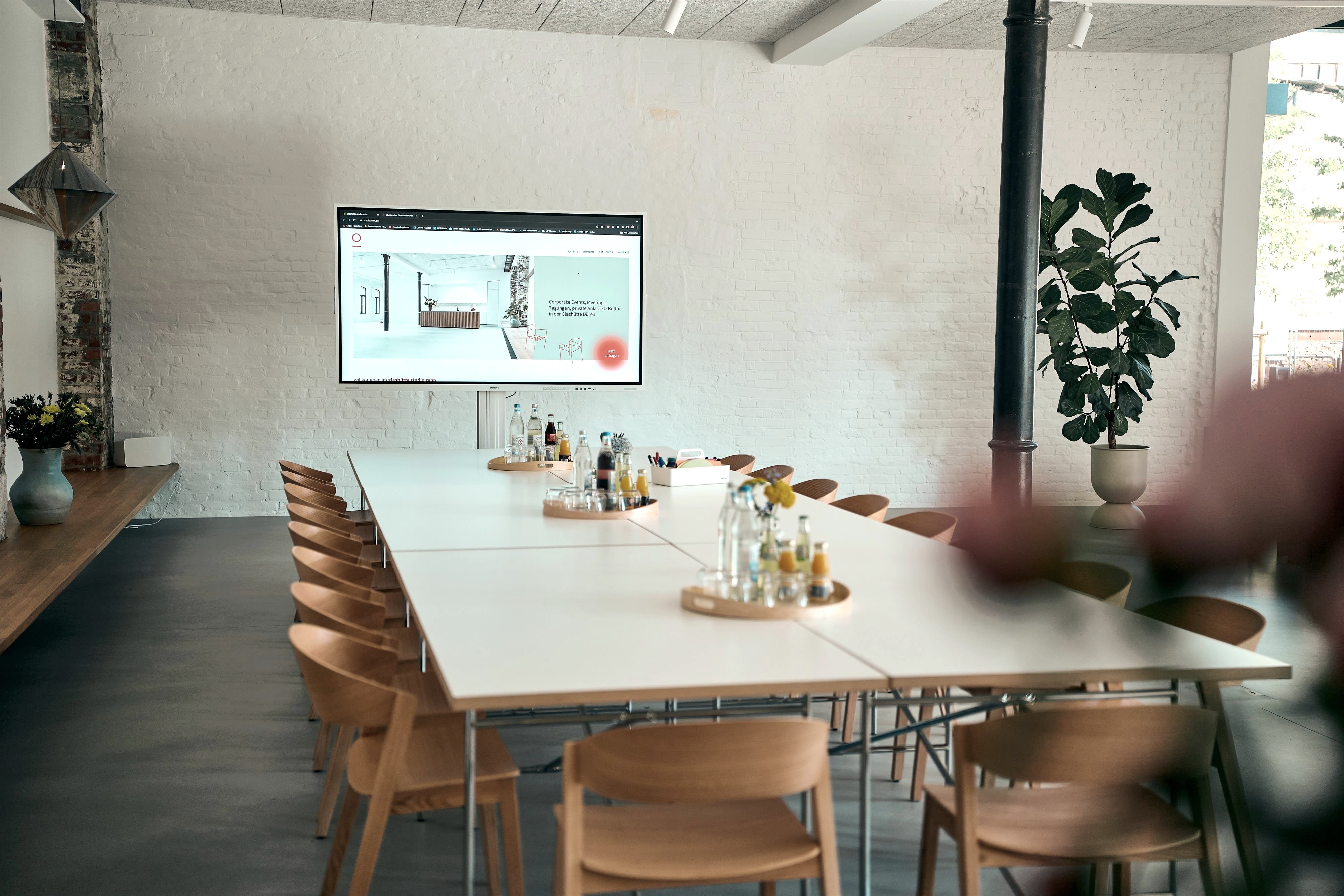 glashütte studio zehn is een ruimte met meerdere concepten midden in de indrukwekkende industriële architectuur van de glasfabriek in Düren. Vergaderingen, workshops, conferenties, stijlvolle feesten of culturele evenementen - met zijn bijzondere combinatie van designklassiekers, modern Scandinavisch interieur en historische bouwelementen biedt studio zehn de ideale omgeving voor individuele formats buiten de mainstream van evenementen.