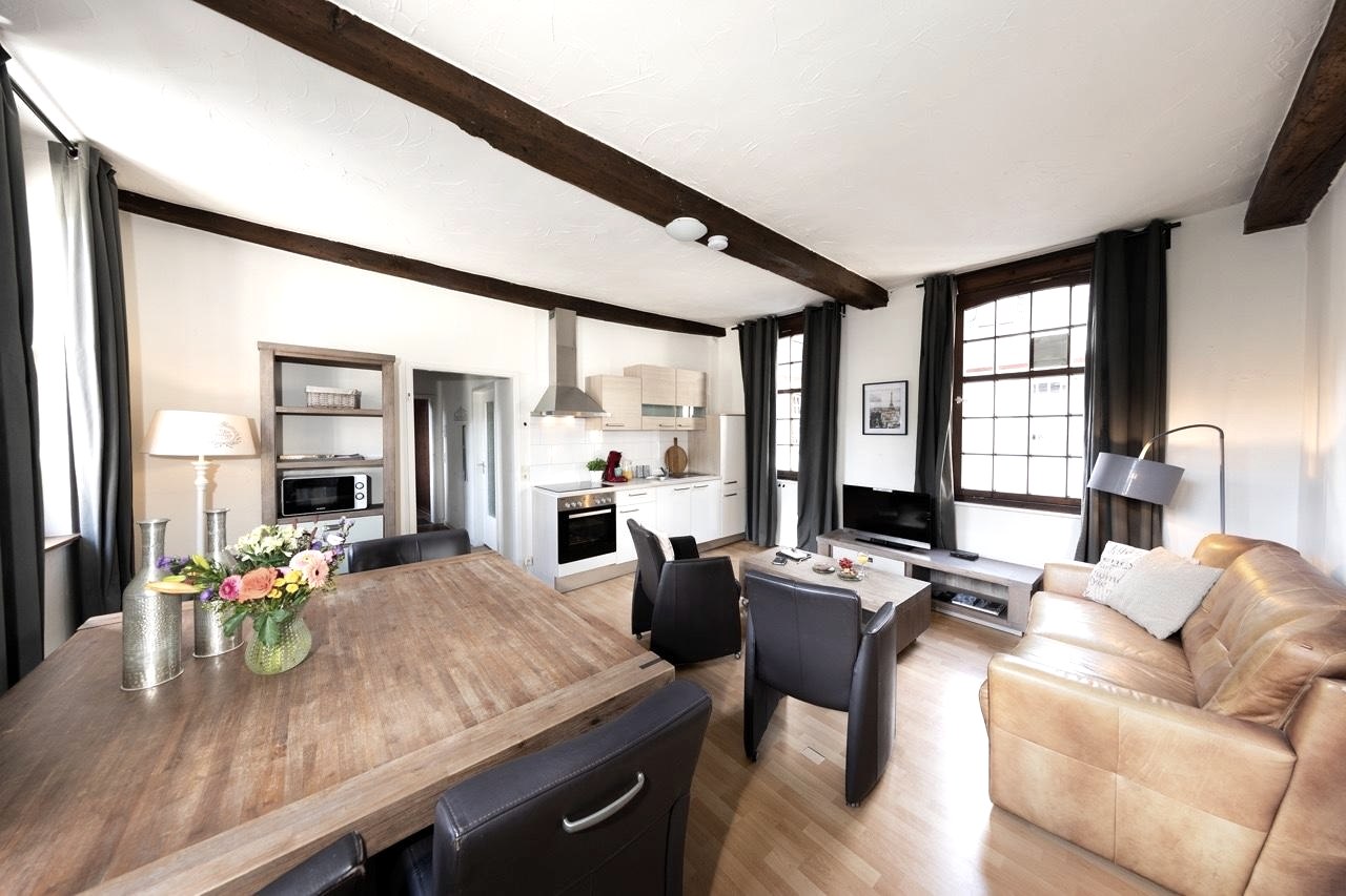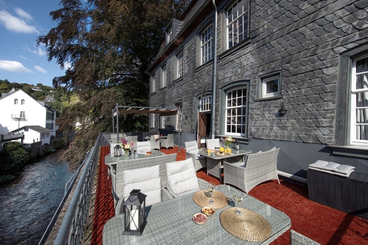 De Elbershof is een historisch pand uit 1778 in het hart van Monschau. Het gebouw verbindt geschiedenis met modern comfort en biedt 13 stijlvolle appartementen. Alle woningen zijn voorzien van een compleet uitgeruste keuken, gezellige woonruimtes en comfortabele slaapkamers.