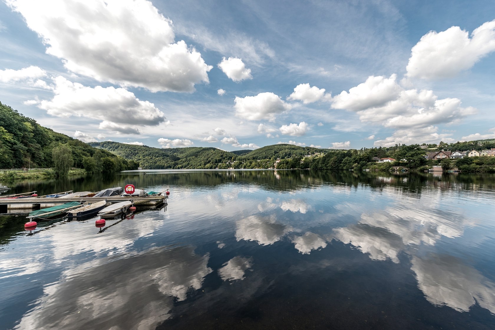 Mountainbiketocht door de Rureifel rond Obermaubach: Als je begint op de parkeerplaatsen bij de treinstations in Obermaubach of Untermaubach, kom je al snel bij het stuwmeer van Obermaubach (ook een parkeerplaats), waar je kunt genieten van een prachtig uitzicht op het stuwmeer. Deze MTB-route met weinig verkeer is gemakkelijk te fietsen, maar vereist wel een goede conditie.