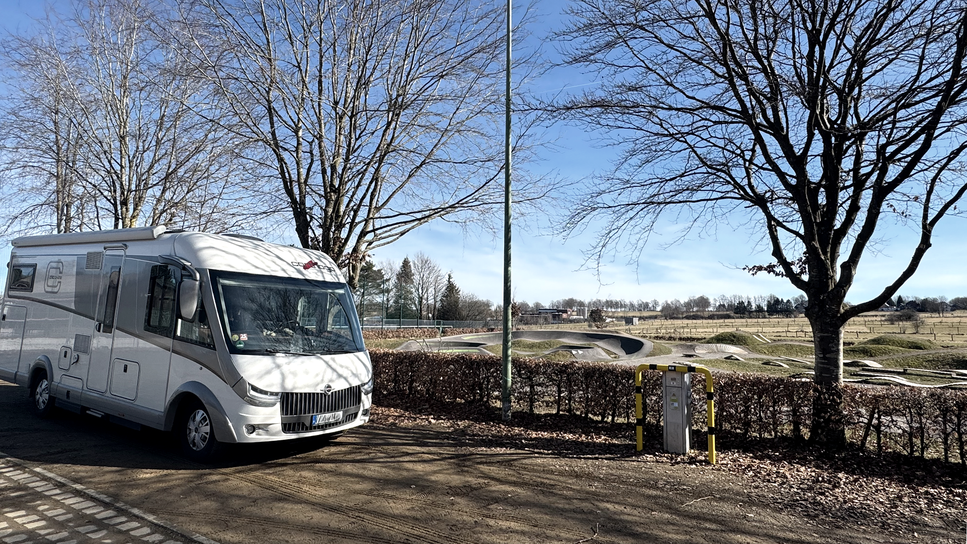 Op de parkeer-/multifunctionele plek naast het MTB-trainingscentrum zijn vijf camperplaatsen beschikbaar. Het dorpscentrum met een bakker en een supermarkt is in 5 minuten te voet bereikbaar. Direct naast de camperplaats loopt het lokale wandel- en fietspadennetwerk en bij goede sneeuwomstandigheden in de winter ook een loipe. Ook het dichtstbijzijnde kinderspeelplaats in het nabijgelegen Clara-Viebig Park is slechts enkele minuten verwijderd.