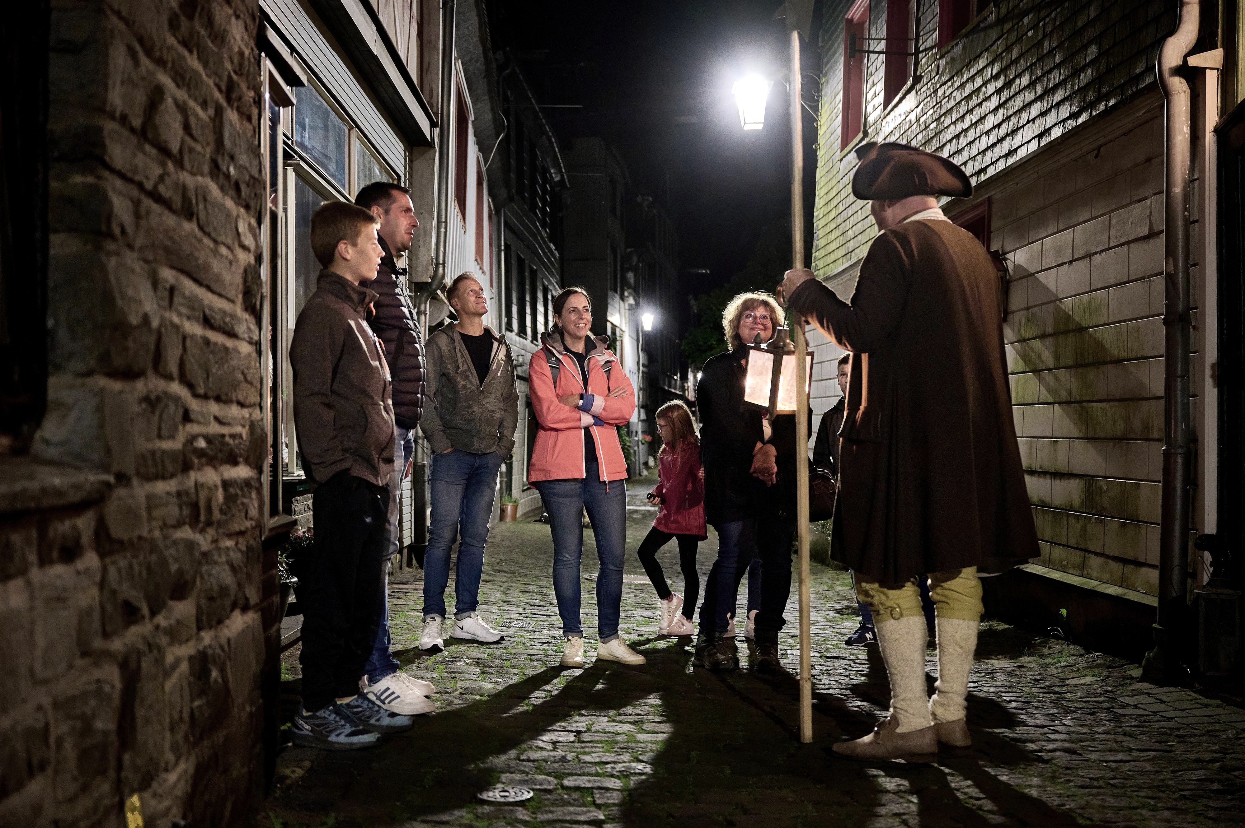 Hört Ihr Leut’ und lasst Euch sagen…So klingt es, wenn es Nacht wird in Monschau. Begleiten Sie den Gästeführer im Kostüm des Nachtwächters auf seinem Rundgang und entdecken Sie den Reiz der Altstadt Monschau bei Nacht. Erfahre Interessantes und Amüsantes über die Aufgaben und das Leben des Nachtwächters in alter Zeit