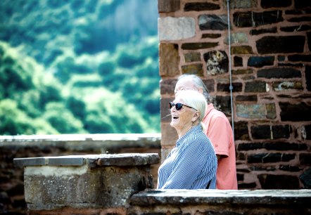 Schon vom Hof aus bietet sich ein eindrucksvoller Panoramablick über Heimbach und das Rurtal. Teile der Anlage sind mit einem Aufzug barrierefrei zugänglich.