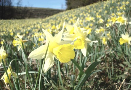 Wilde Narzissen in der Eifel verwandeln Wiesen in gelbe Blütenteppiche.