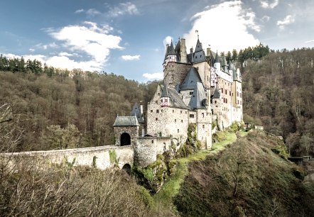 Burg Eltz ist die Märchenburg der Eifel. Seit über 8 Jahrhunderten steht die Burg auf einem Felssporn im Elzbachtal.