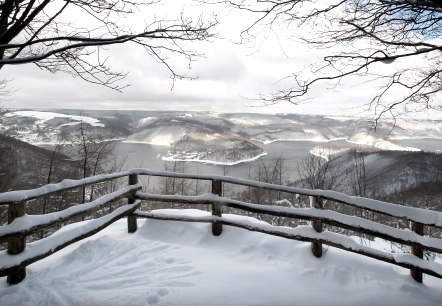Der Aussichtpunkt Schöne Aussicht bietet einen faszinierenden Blick in den Nationalpark Eifel.