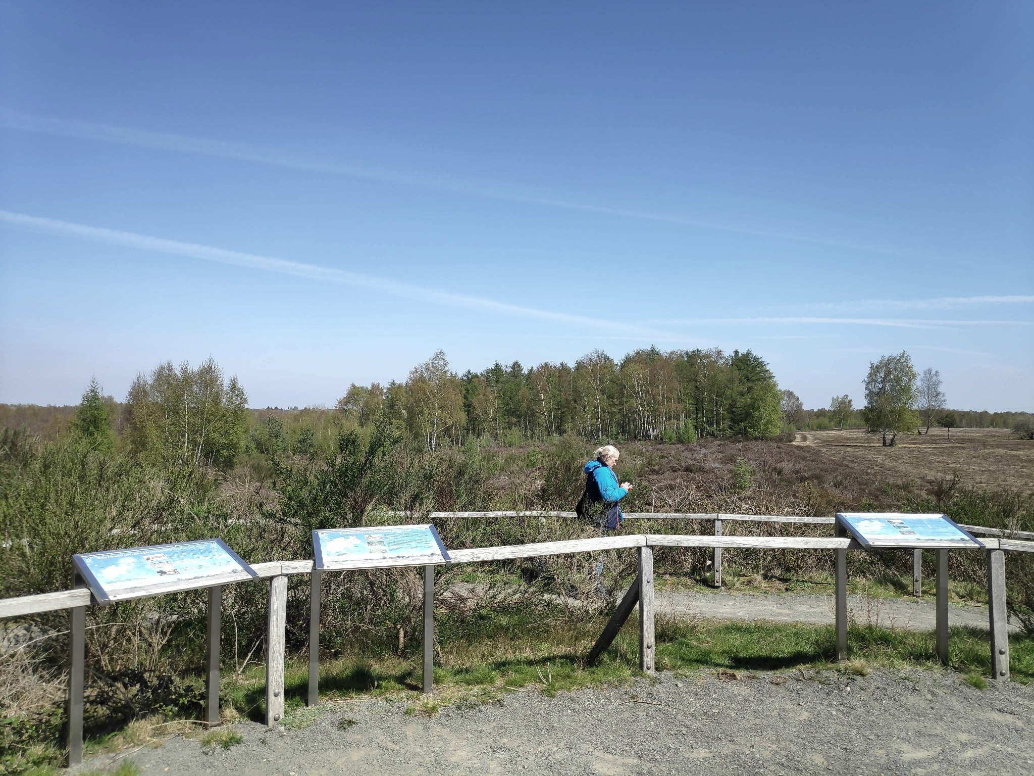 Wir halten uns weitgehend an den vom Eifelverein markierten Rundweg Nr. 52 bzw. an die dunkelblaue Markierung des großen Heideweges. Auf unserer Wanderung laufen wir auf gut ausgebauten Wegen durch eine abwechslungsreiche Landschaft. Die ebenen Wanderwege durch die offene Heide, über Wiesen und lichte Wälder, führen teilweise über Holzstege und bieten besondere Einblicke in den Lebensraum seltener Pflanzen und Tiere.